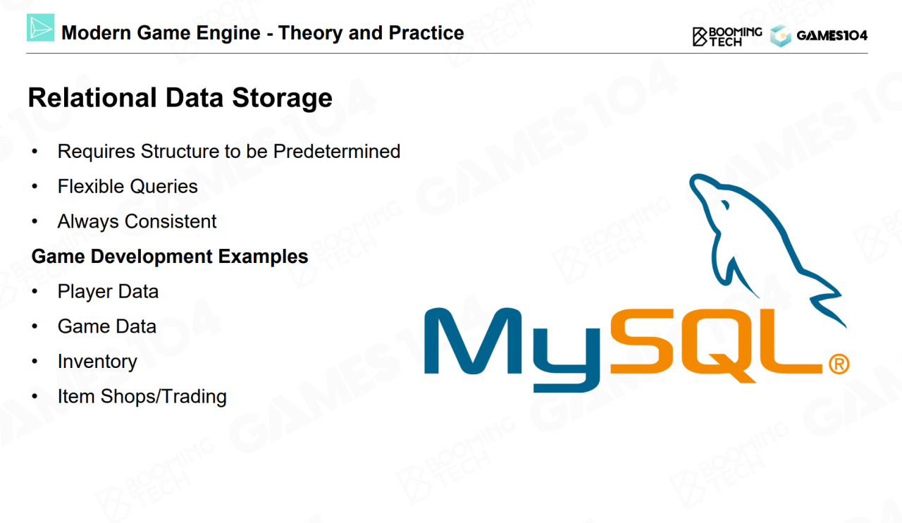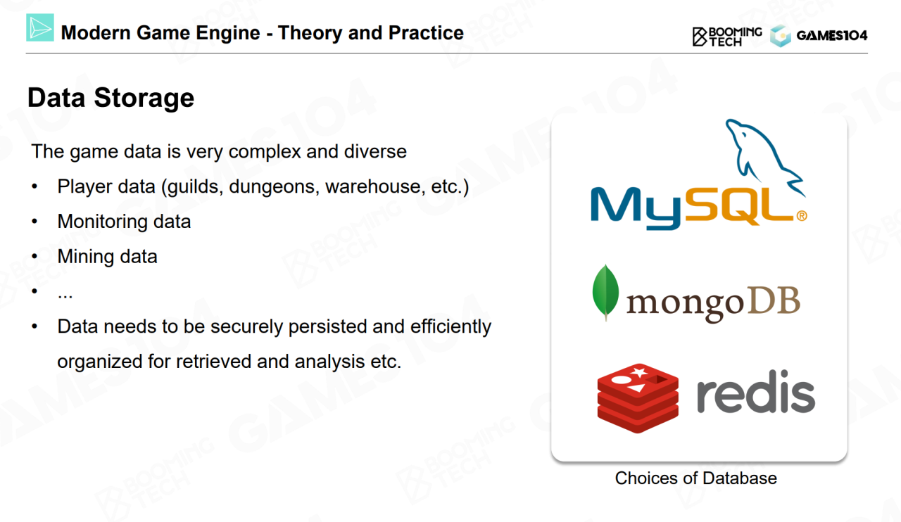 关系数据库是最基本的数据存储方式,像游戏中玩家数据和游戏数据都会使用关系数据库进行存储。现代网络游戏中往往还会结合分布式的技术进行存储。