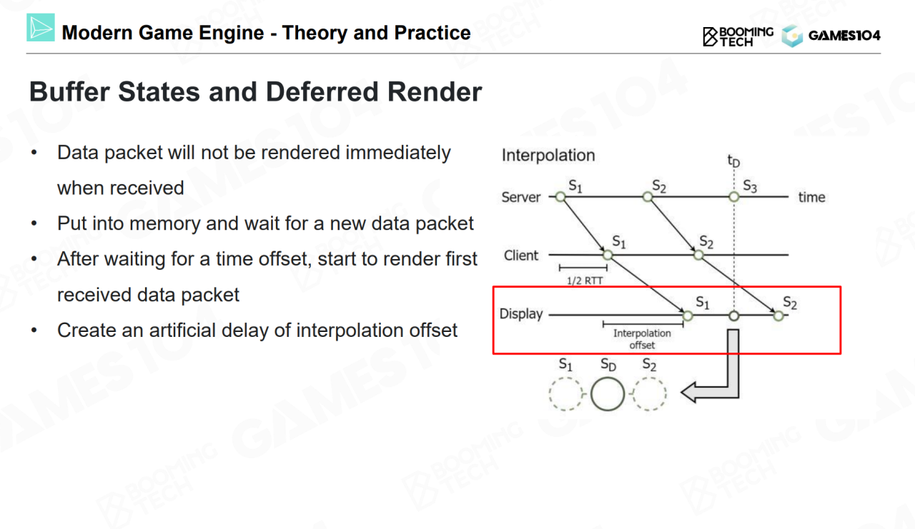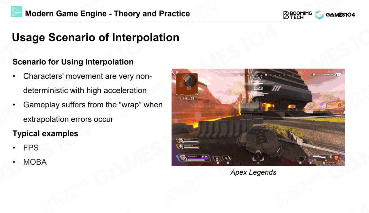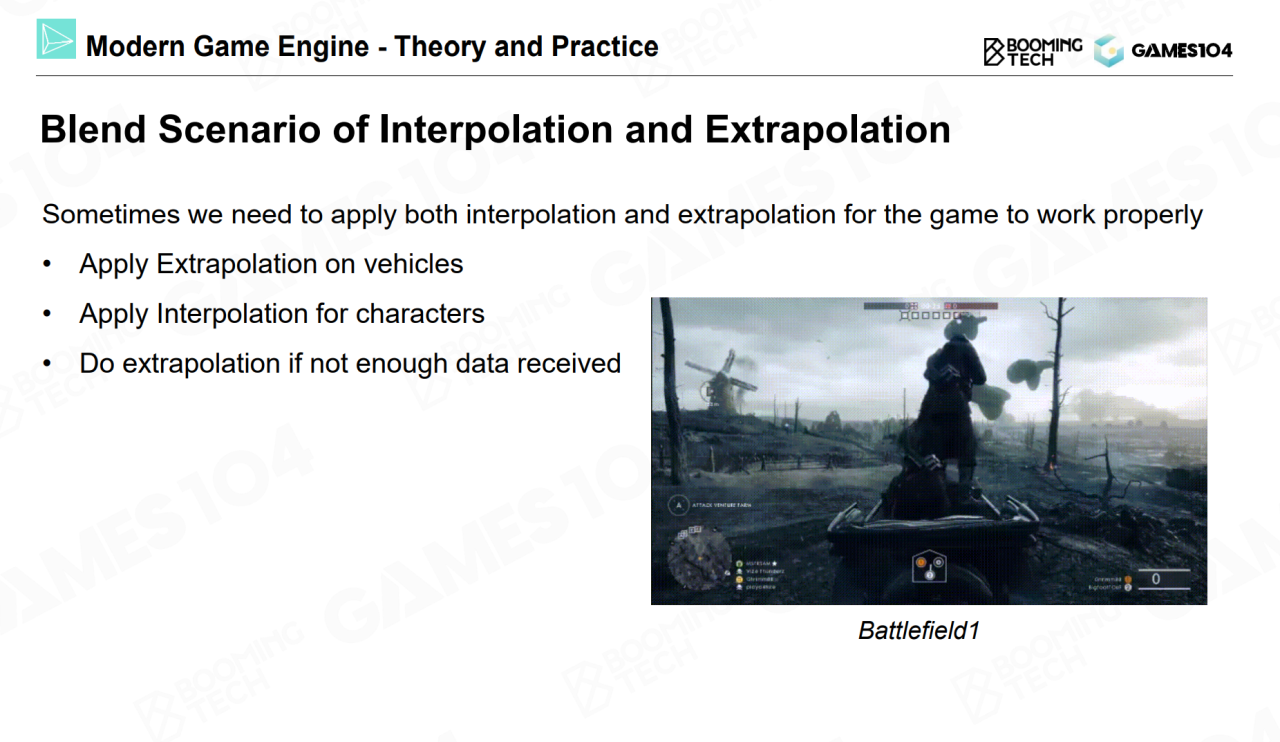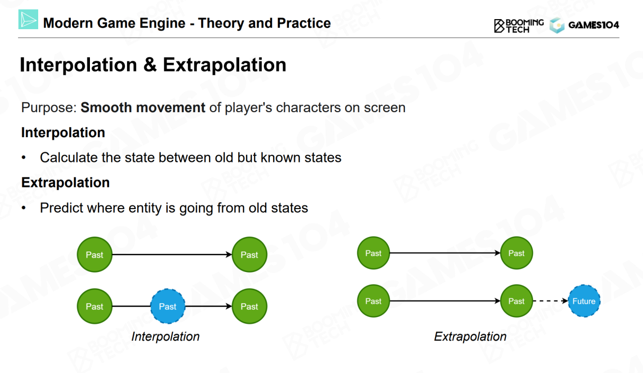 在这种情况下我们可以使用内插(interpolation)和外插(extrapolation)两种插值方法来缓解延迟。
