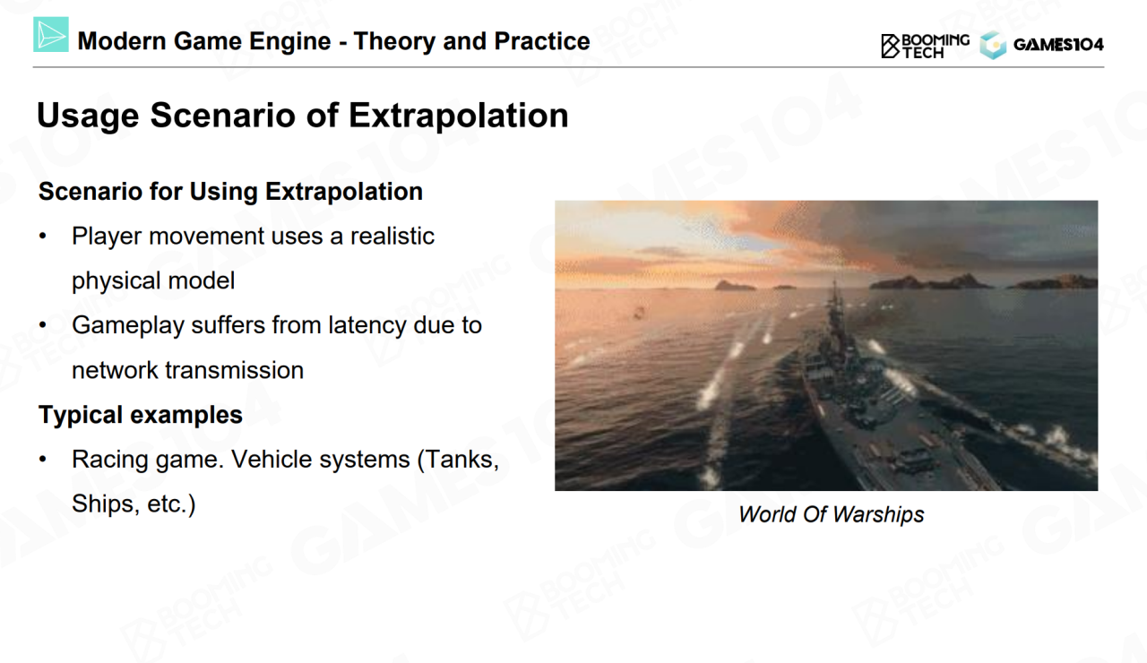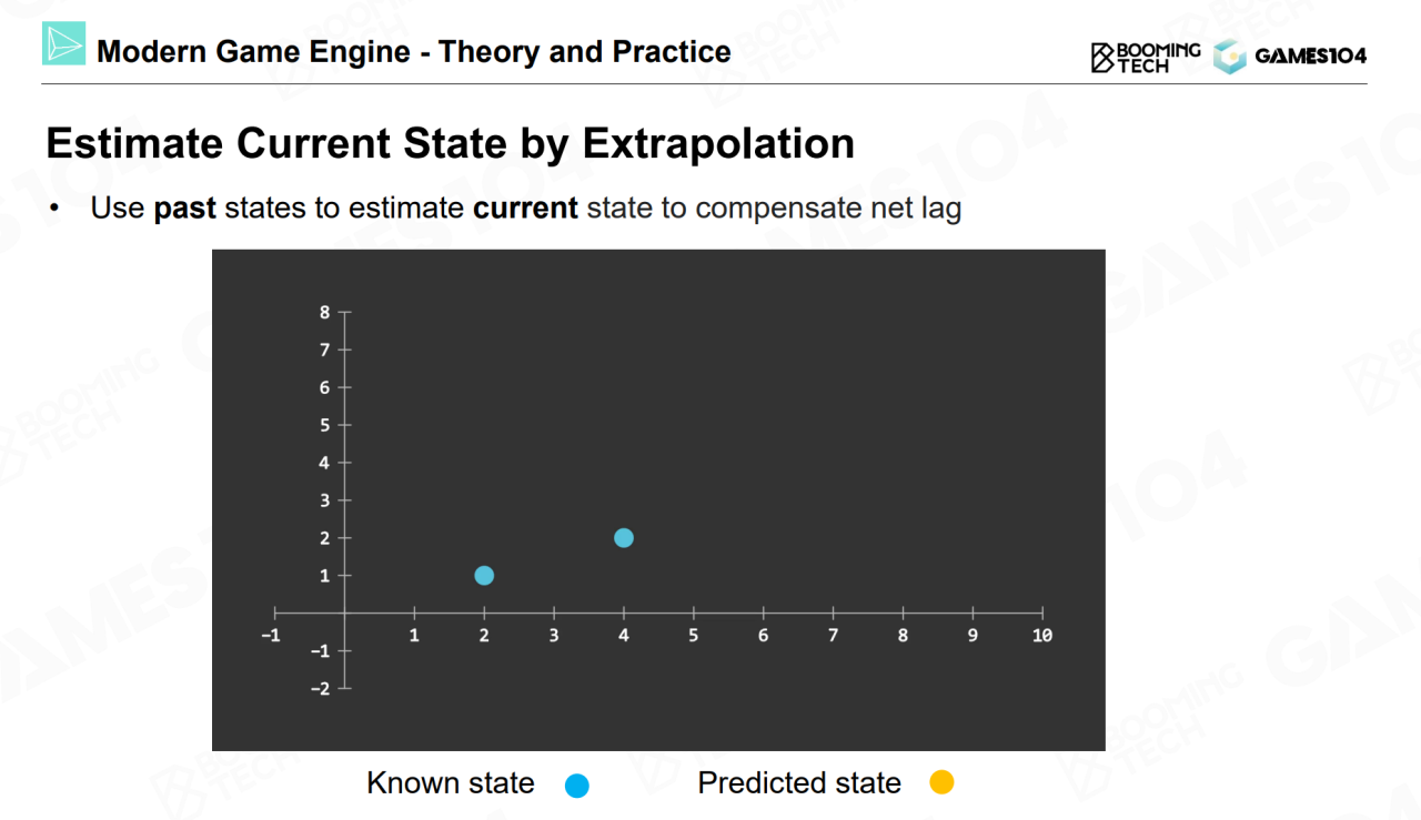 相比于内插,外插的本质是利用已有的信息来预测未来的状态。当我们对网络延迟有一定的估计时就可以通过外插的方法来推断角色的状态。