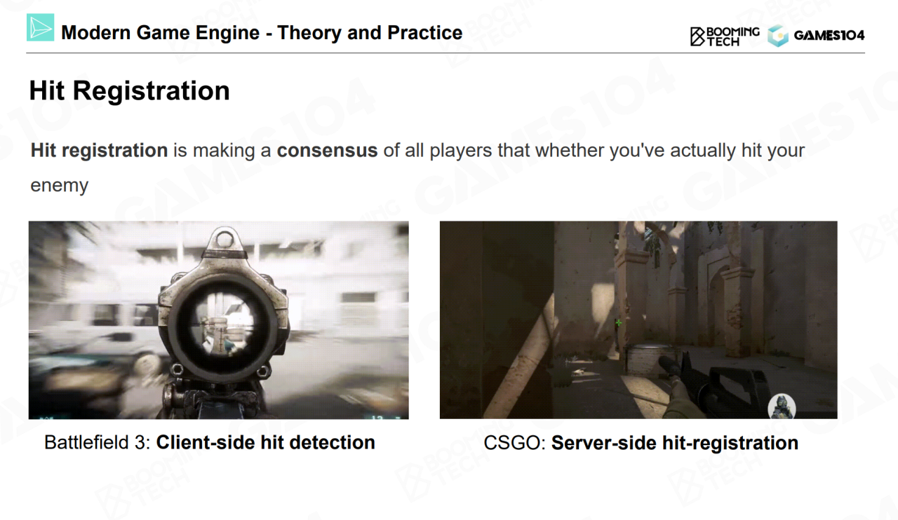命中判定(hit registration)同样是现代网络游戏必须要提供的基本服务。以FPS游戏为例,从玩家开枪到击中敌人这一过程实际上有着非常大的一段延迟,在各种不确定因素的影响下如何判断玩家确实击中目标就需要一些专门的设计。