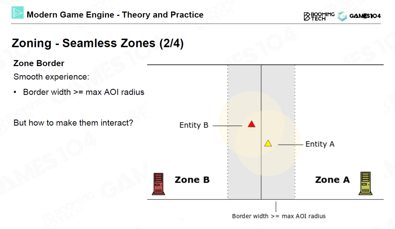 我们可以把整个游戏世界划分为若干个区域,这样每个玩家都会位于某个区域中。不同区域的数据是相互隔绝的,因此在同步时只需要同步区域中的数据即可。