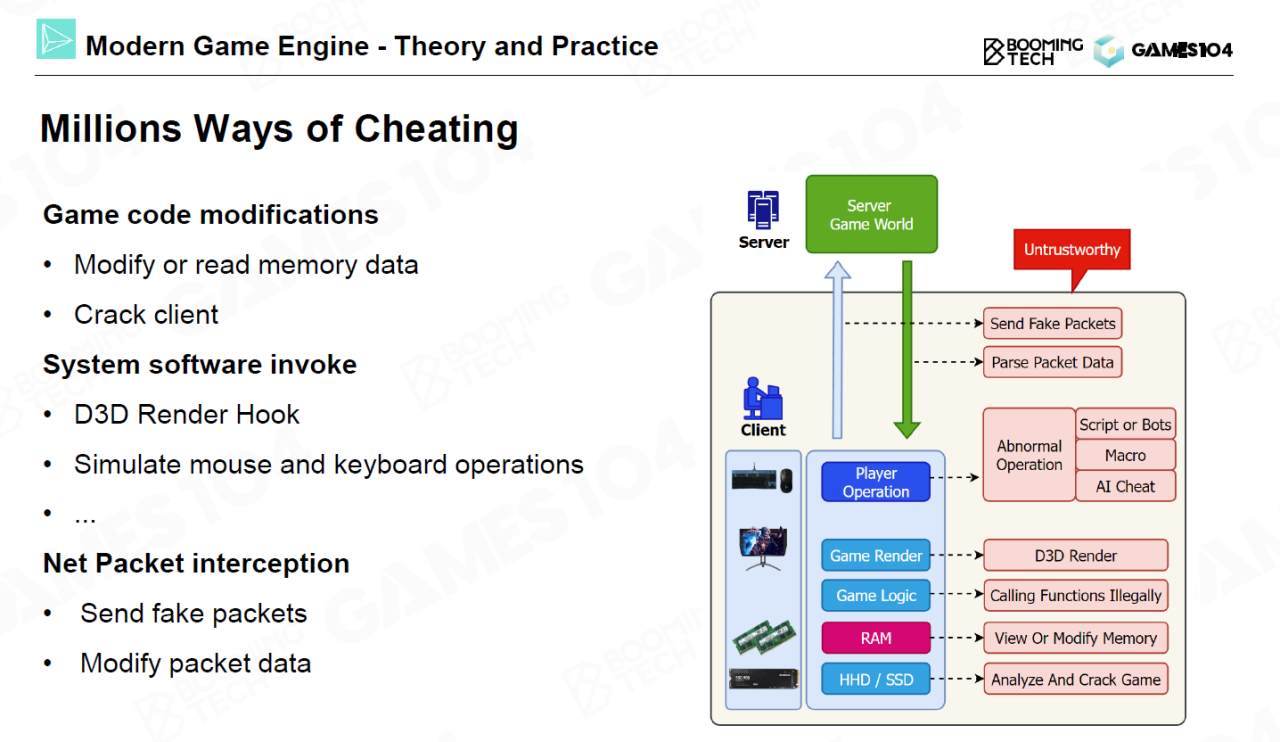 反作弊(anti-cheat)同样是现代网络游戏必须要实现的功能,作弊行为对游戏运营和其他玩家都会造成非常巨大的伤害。