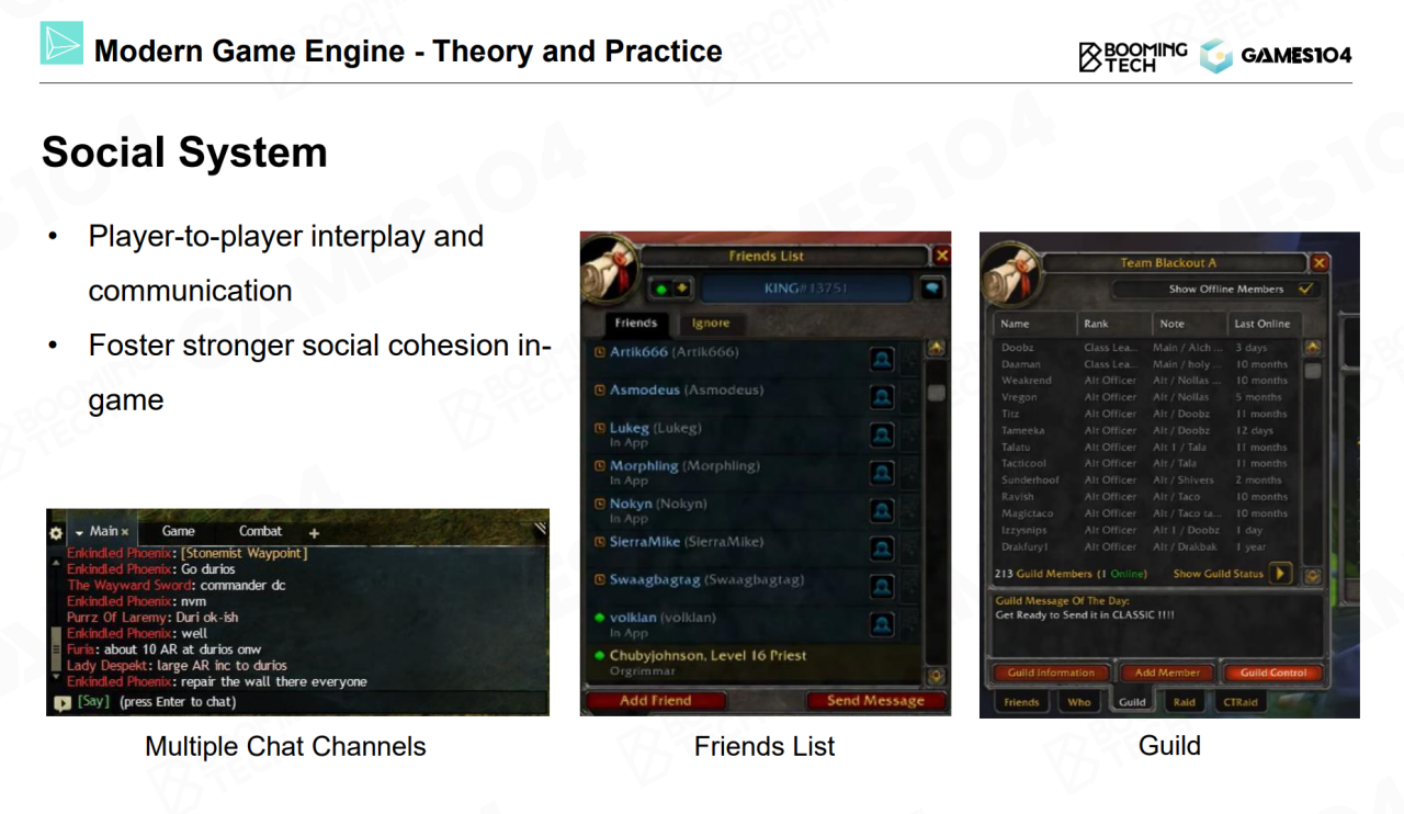 玩家之间的聊天和交互功能一般会通过专门的社交系统(social system)来进行实现。