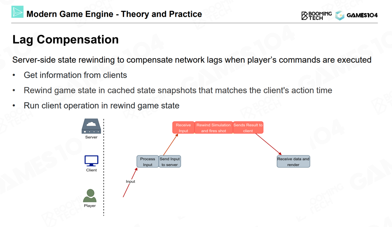 因此我们需要对网络延迟进行一定的补偿。当服务器收到射击的消息时不会直接使用当前的游戏状态,而是根据延迟使用之前保存的游戏状态。