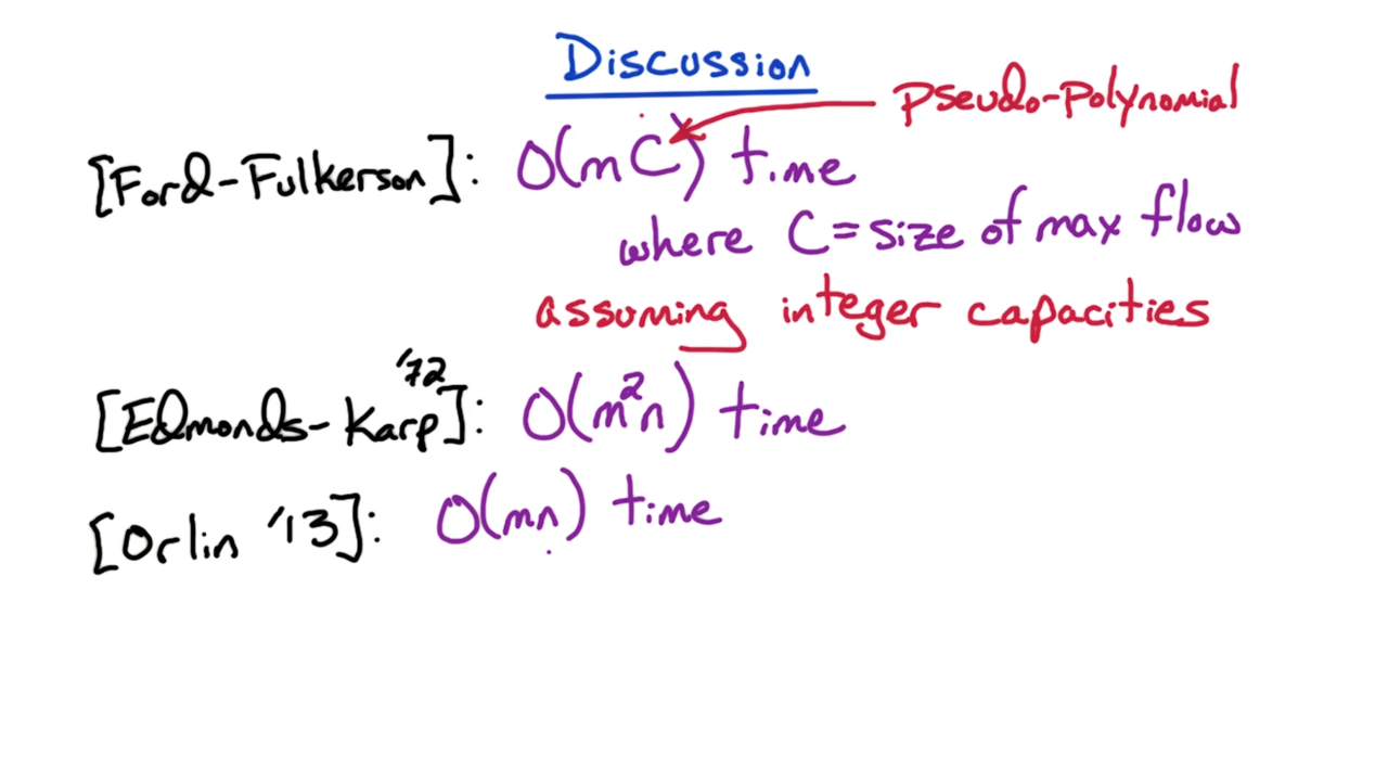 Ford-Fulkerson算法的复杂度为$O(mC)$。