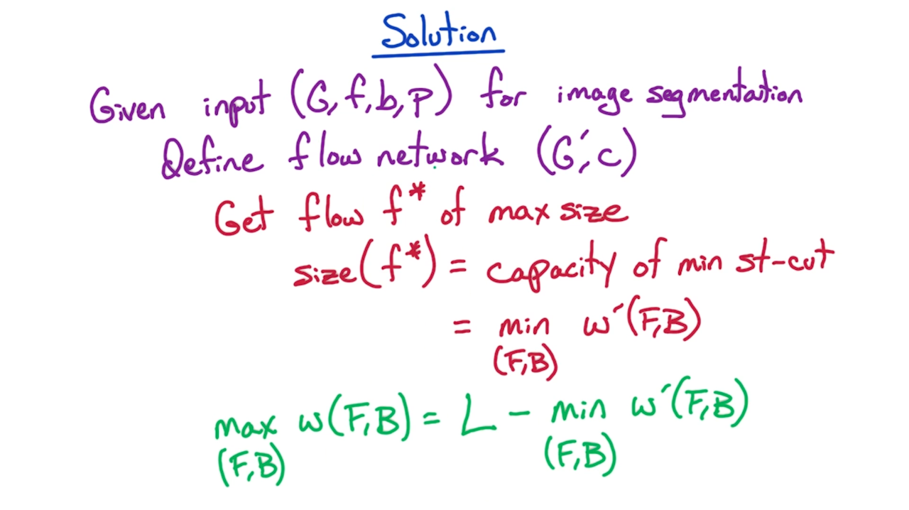 最后我们就可以利用最大流的相关算法来求解图像分割问题,此时图上的最小割(最大流)恰为图像分割的目标函数。