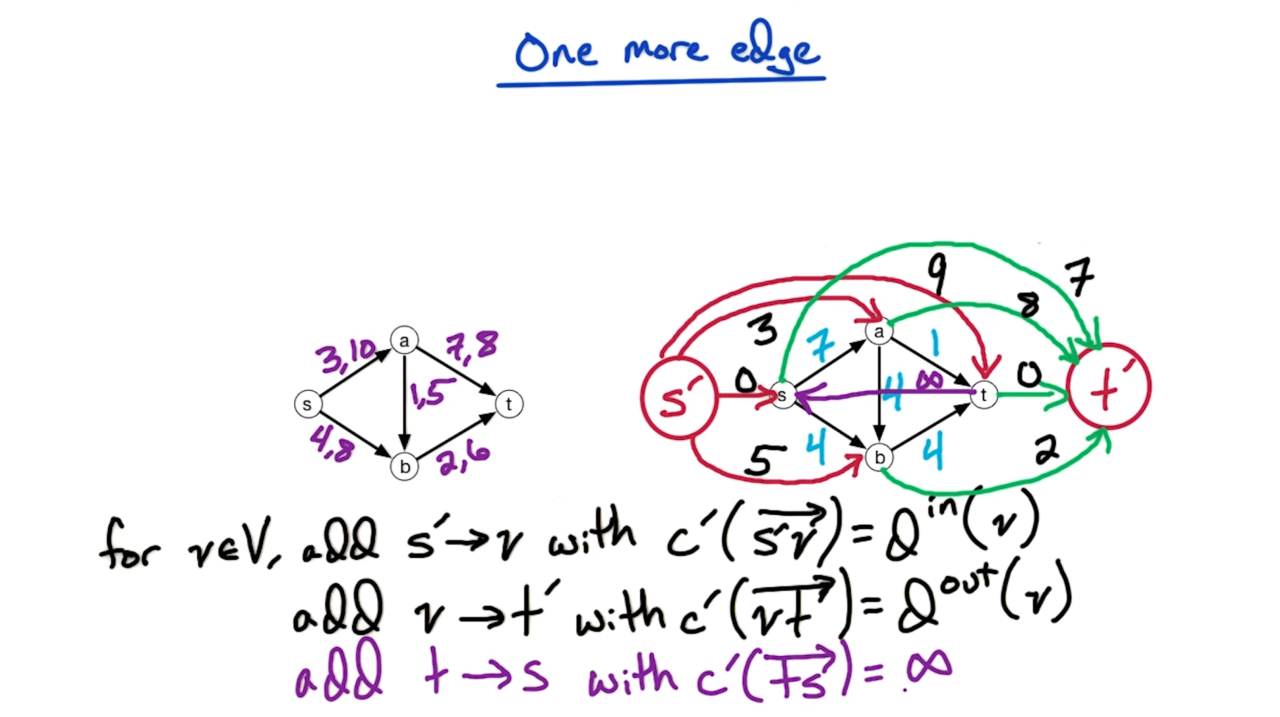 除此之外,我们还需要为t和s之间添加一条具有无穷大capacity的边。