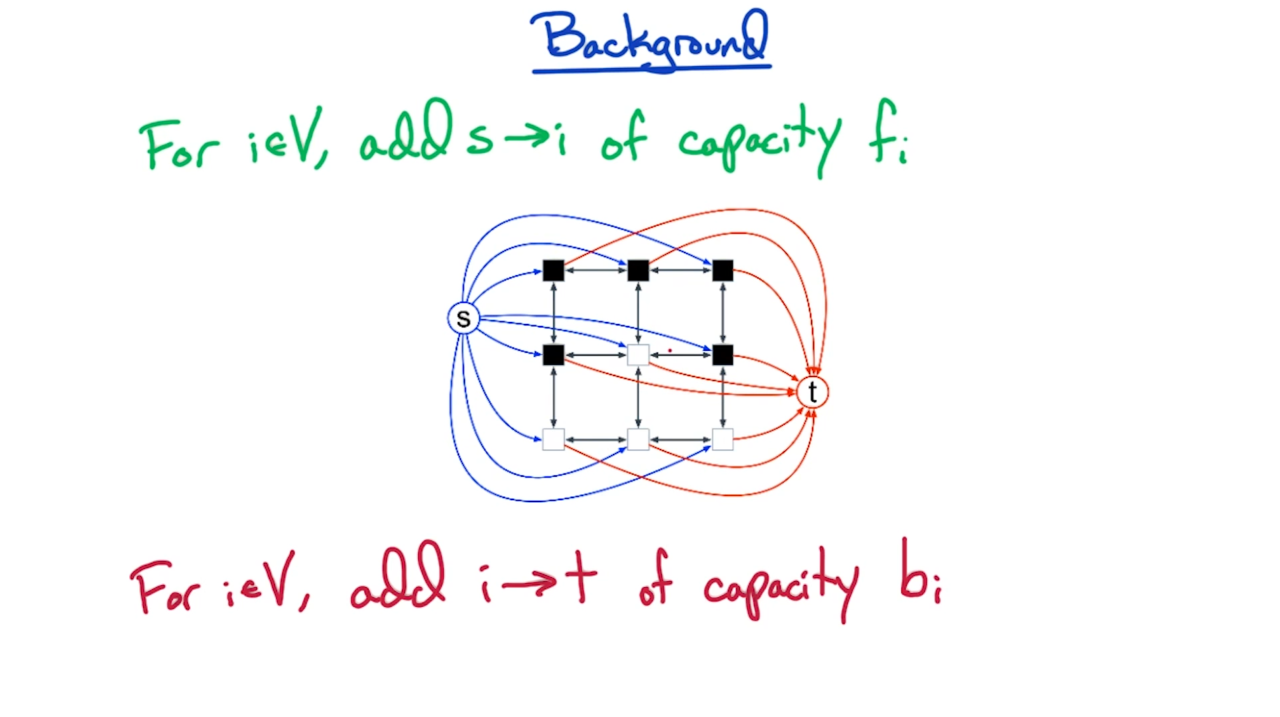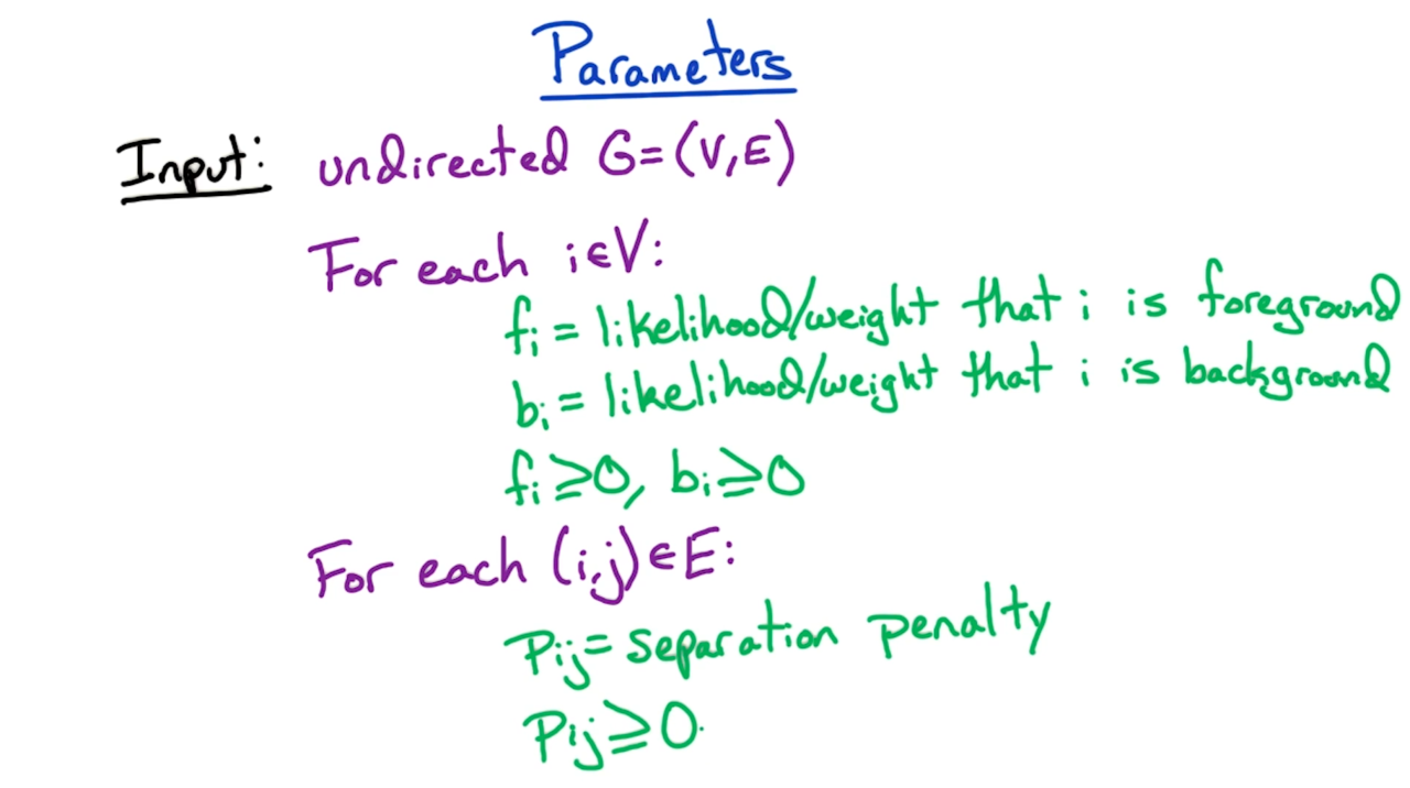 同时图上的每个顶点考虑其分类为前景或是背景的似然,而图的每一条边对应进行分割所需支付的代价。