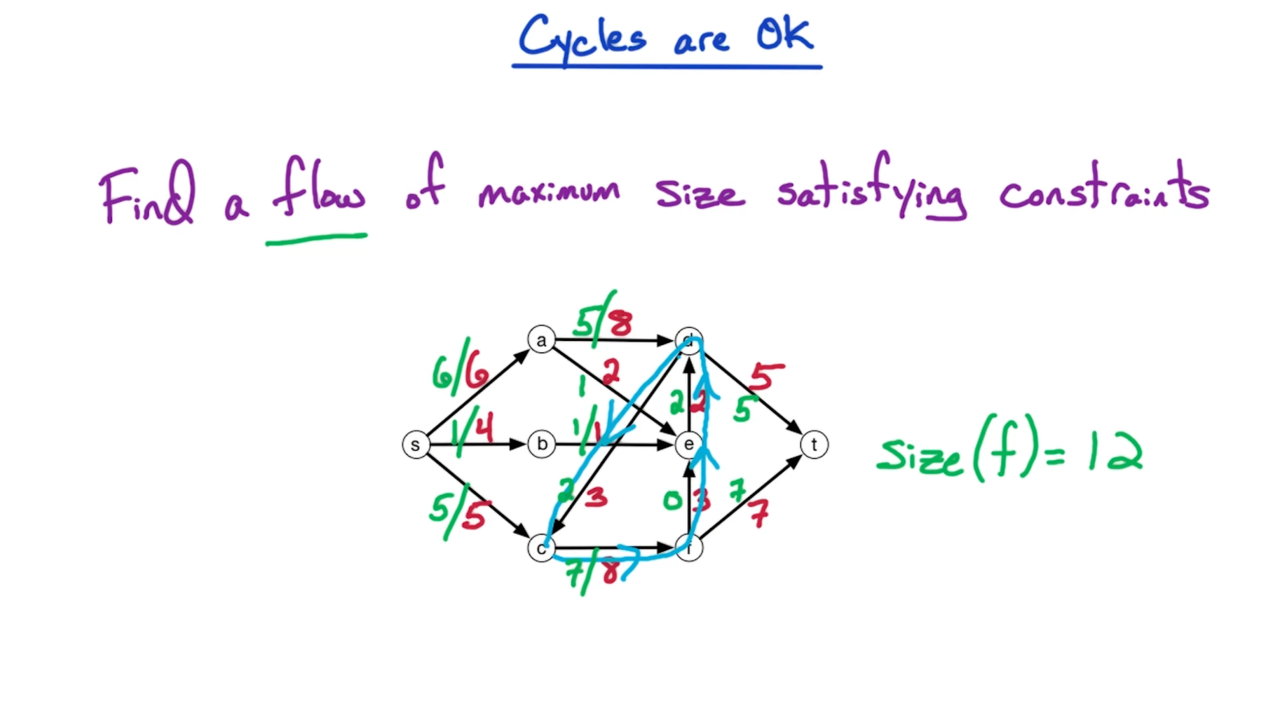 和其它图上的问题相比,最大流问题的特点在于我们允许图上出现环。