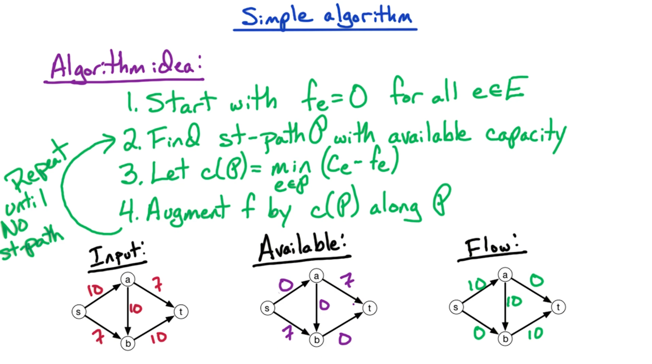 上述算法的缺陷在于反向的流量,实际上通过反向的流动我们才能最大化流量。