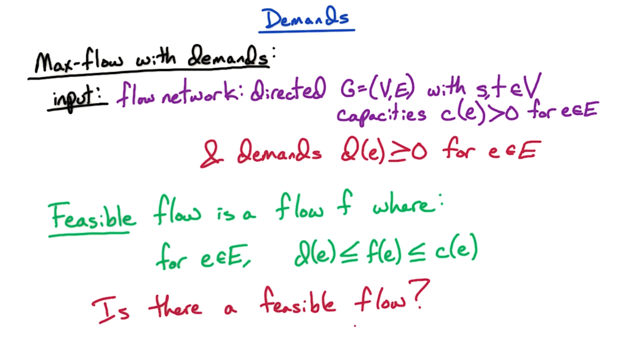 除了标准最大流之外,最大流问题还有一些变体。我们可以为每条边定义一个非负的量demand,同时希望每条边上的flow在小于等于capacity的基础上还有大于等于demand,此时图上的流称为feasible flow。显然我们希望能够最大化feasible flow,但在此之前我们首先需要回答feasible flow是否存在的问题。