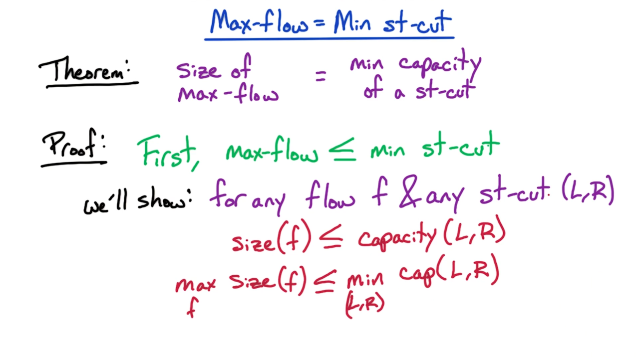 最大流问题的一个重要结论是最大流与最小st-cut的等价性,即最大流的流量等于最小st-cut的capacity。