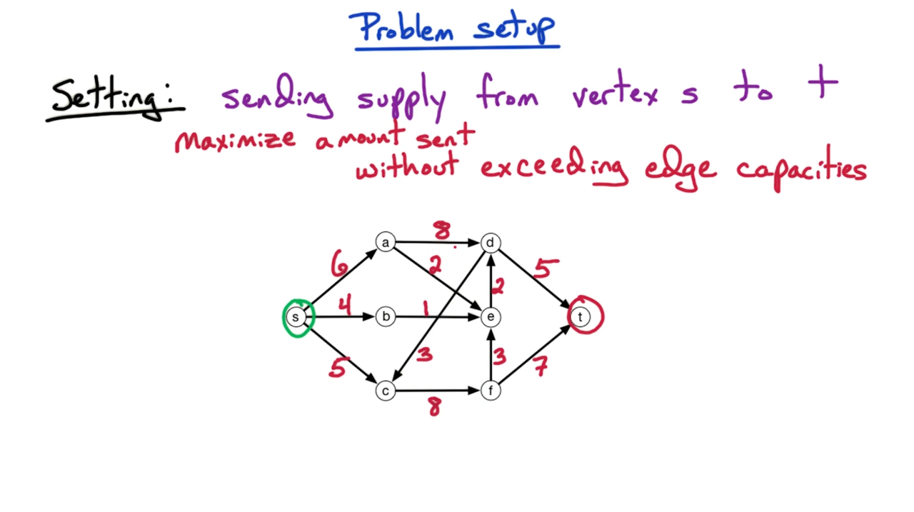 最大流(max flow)问题是图上的经典问题。对于有向图G,从节点s向节点t发送数据时每条边都具有一定的容量,显然我们希望最大化发送的数据量而且在每条边上不要超过相应的容量。