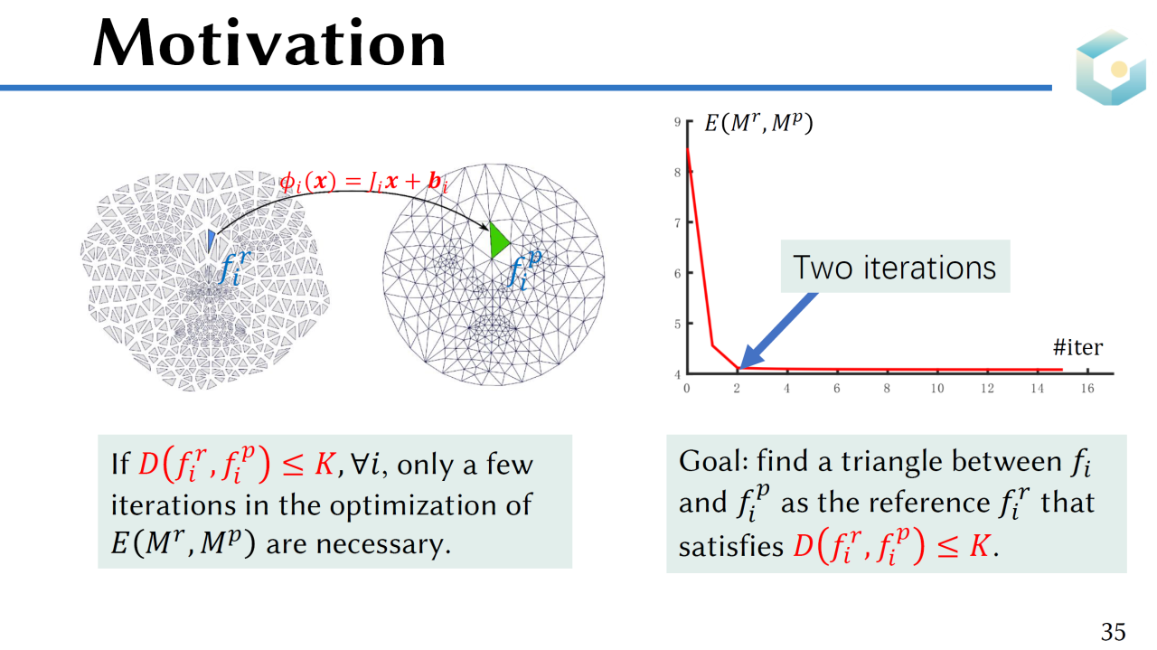 试验结果显示,当参考三角形与初始化三角形之间存在较大的扭曲时就会导致优化比较困难。而如果二者之间的扭曲比较小,只需要少量的迭代就可以收敛。