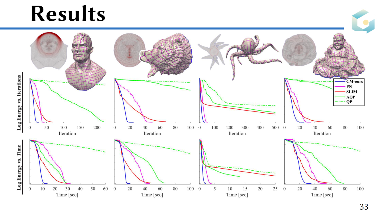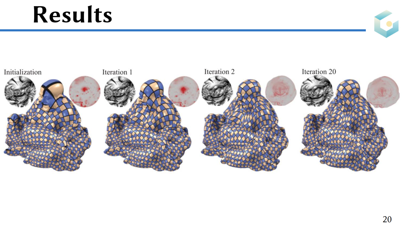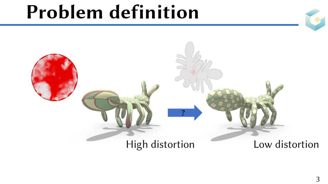 计算无翻转参数化的另一种思路是以一个初始无翻转的参数化作为起点,然后通过不断优化的方式来修正几何扭曲。