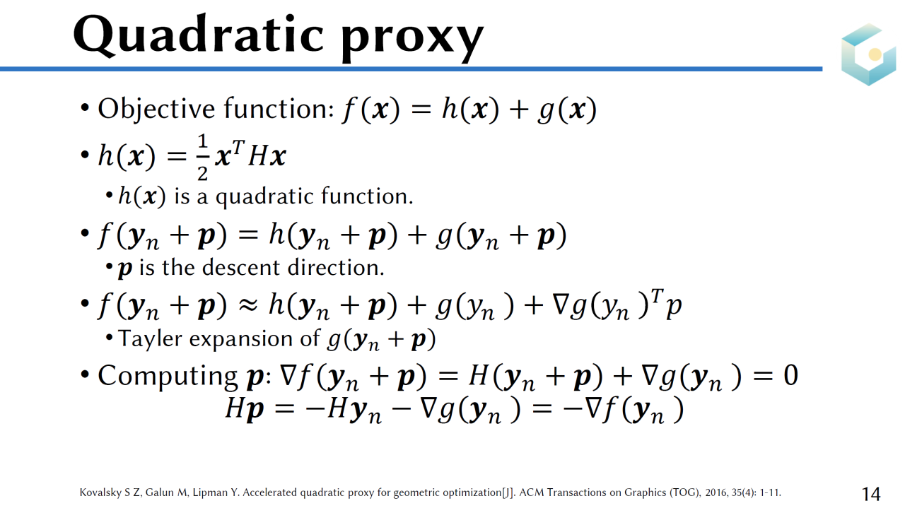 \[f(\mathbf{x} + \mathbf{p}) \approx h(\mathbf{x} + \mathbf{p}) + g(\mathbf{x}) + \nabla g(\mathbf{x}) \cdot \mathbf{p}\]此时计算优化方向\(\mathbf{p}\)等价于求解线性方程组: