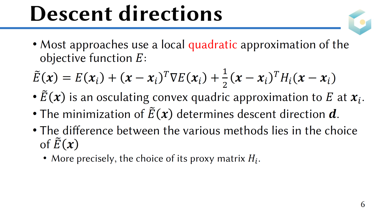 而在计算优化的方向时,大部分的算法都使用了局部二次近似这样的技巧。具体来说,目标函数\(E(\mathbf{x})\)可以使用泰勒展开来得到二阶近似: