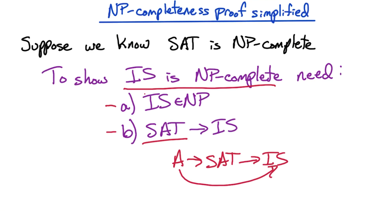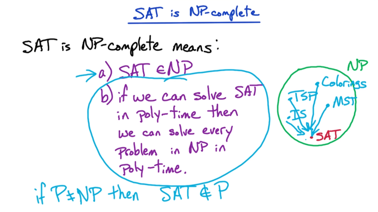 由于我们已知SAT问题是NP完备问题,因此对于第二步可以通过归约将SAT归约到所需问题上来进行证明。
