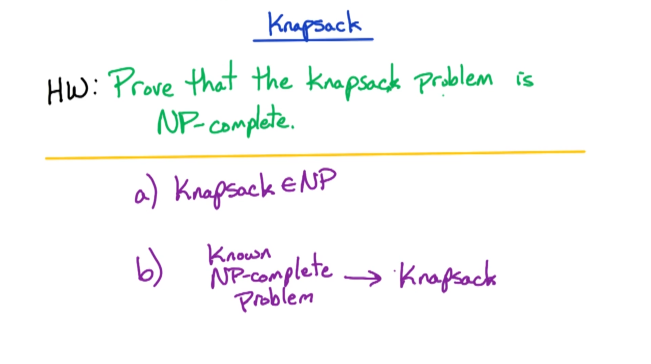前面我们利用SAT证明了3SAT以及IS都是NP完备问题,而在这一小节中我们会证明knapsack同样是NP完备问题。