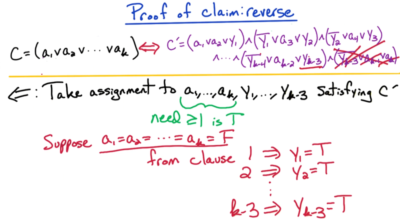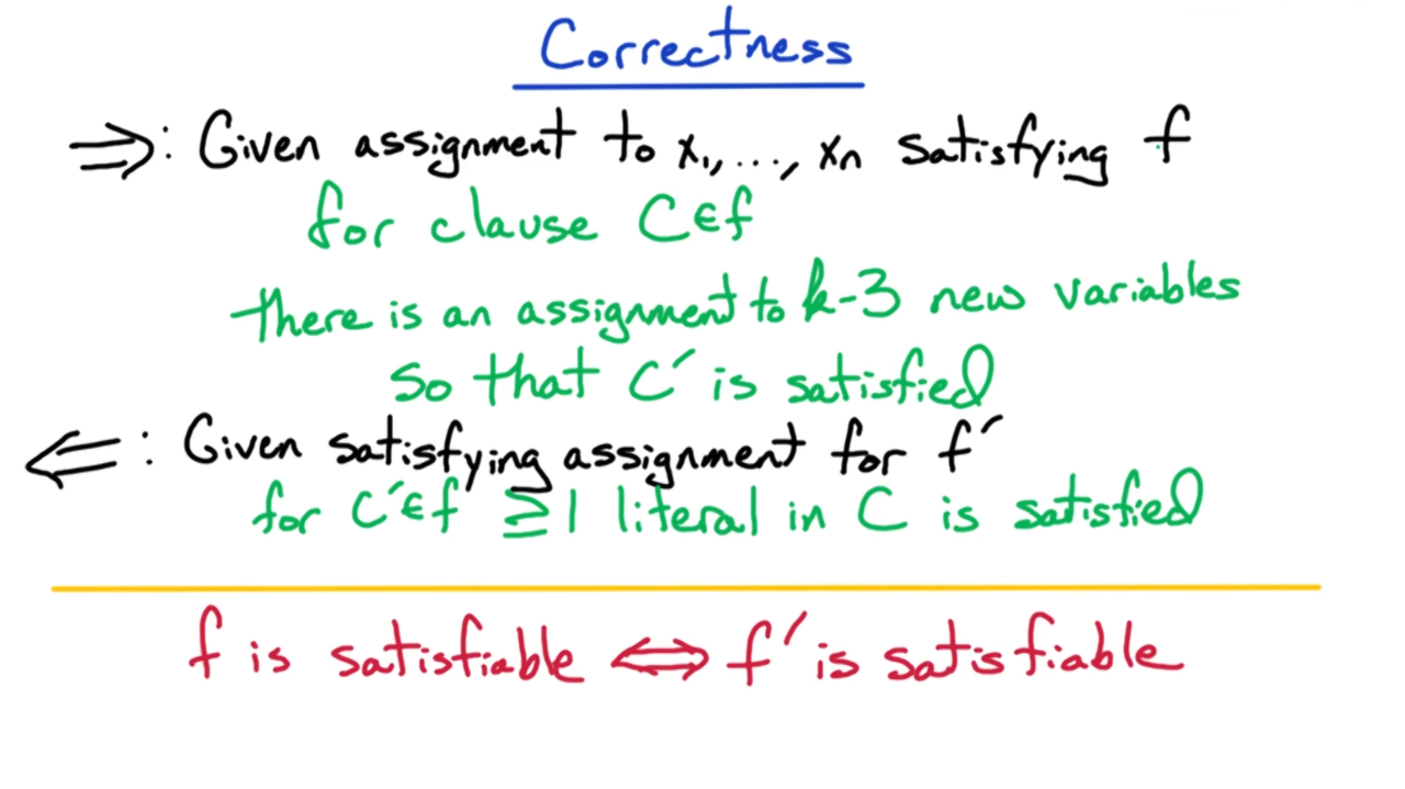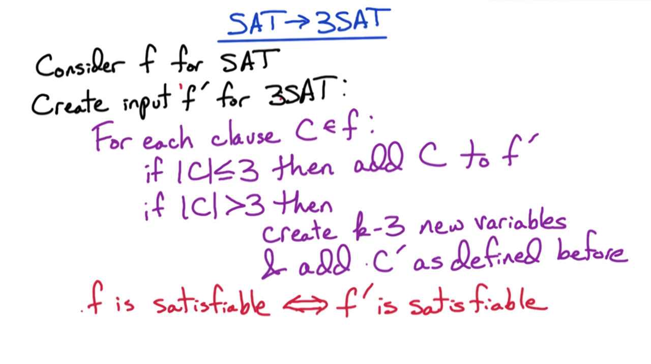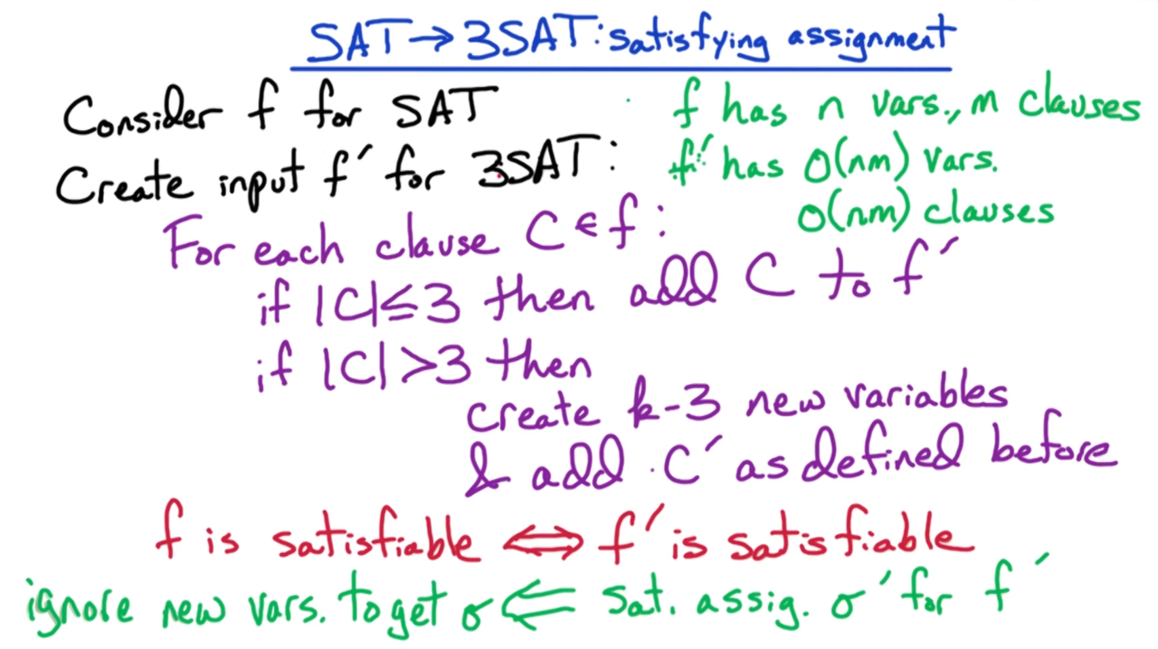 实际上对于包含k个变量的从句$C$我们都可以把它转换为只包含3个变量的从句$C’$: