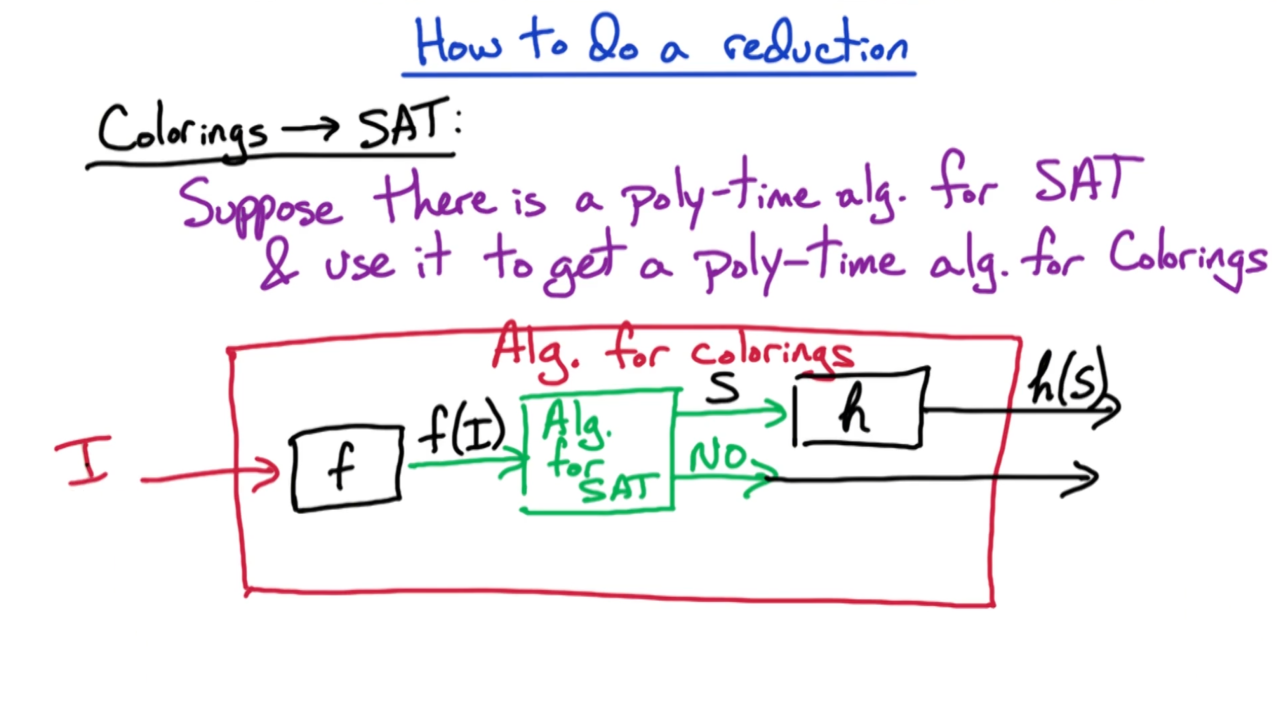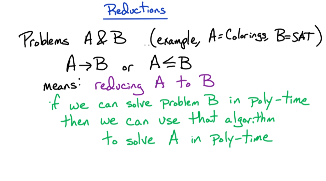 假设问题A为图着色问题,问题B为SAT问题。利用归约可以证明图着色问题为NP完备问题。