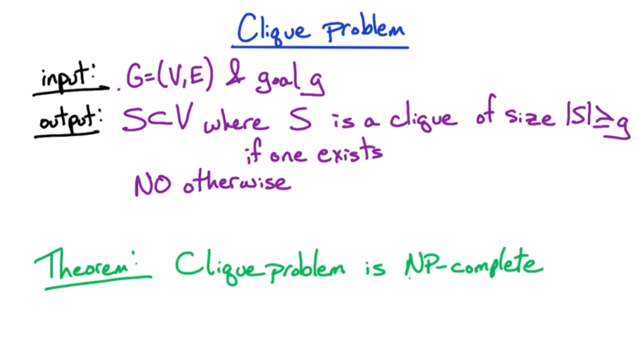 类似于独立集问题,我们同样先构造一个关于团的搜索问题。此时要求团的大小至少为g,而这个团搜索问题实际上也是一个NP完备问题。