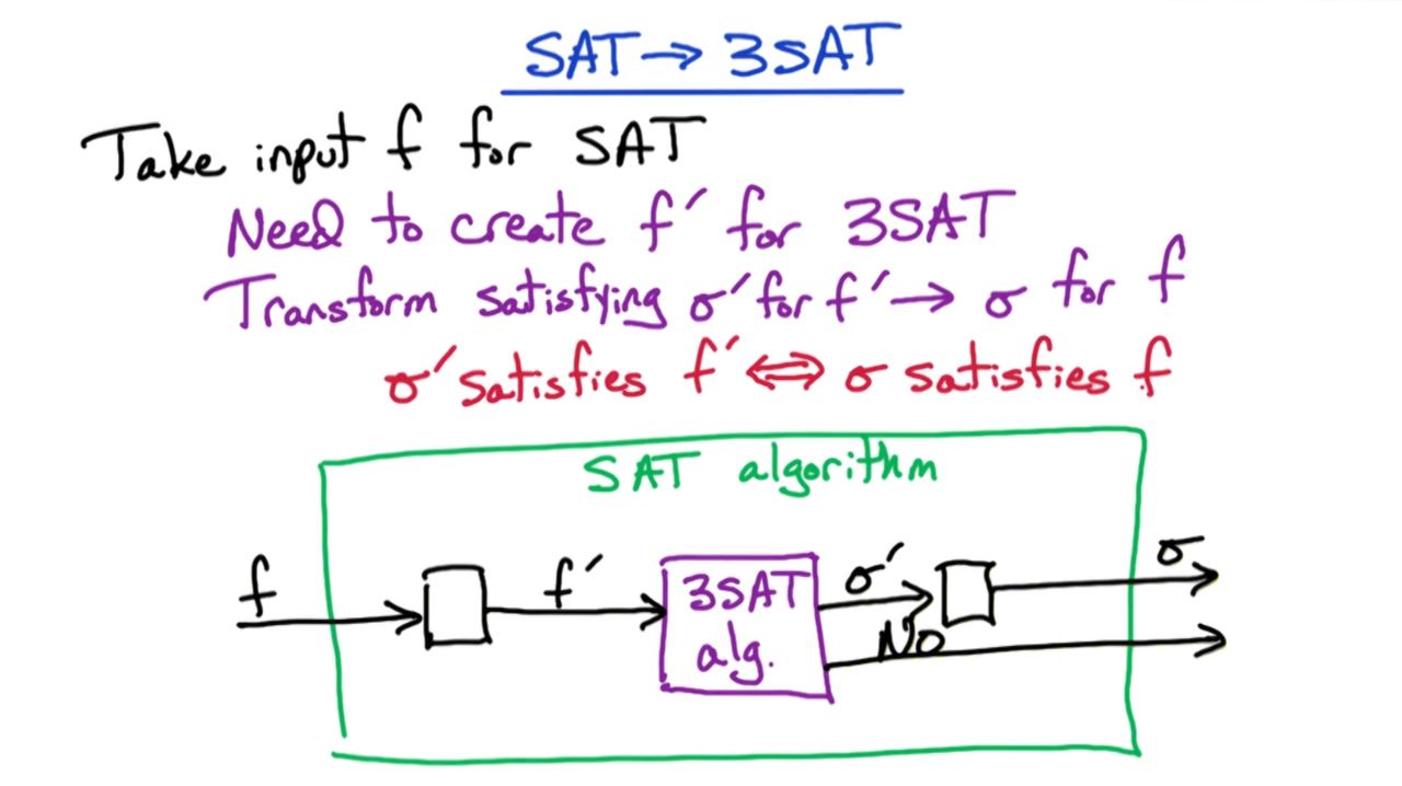 接下来证明SAT可以归约到3SAT上,具体来说我们需要证明任意SAT问题可以转换为求解一个3SAT问题。
