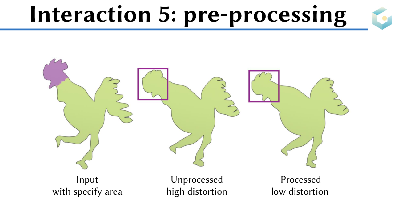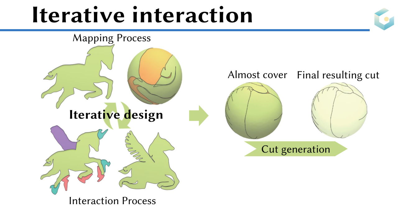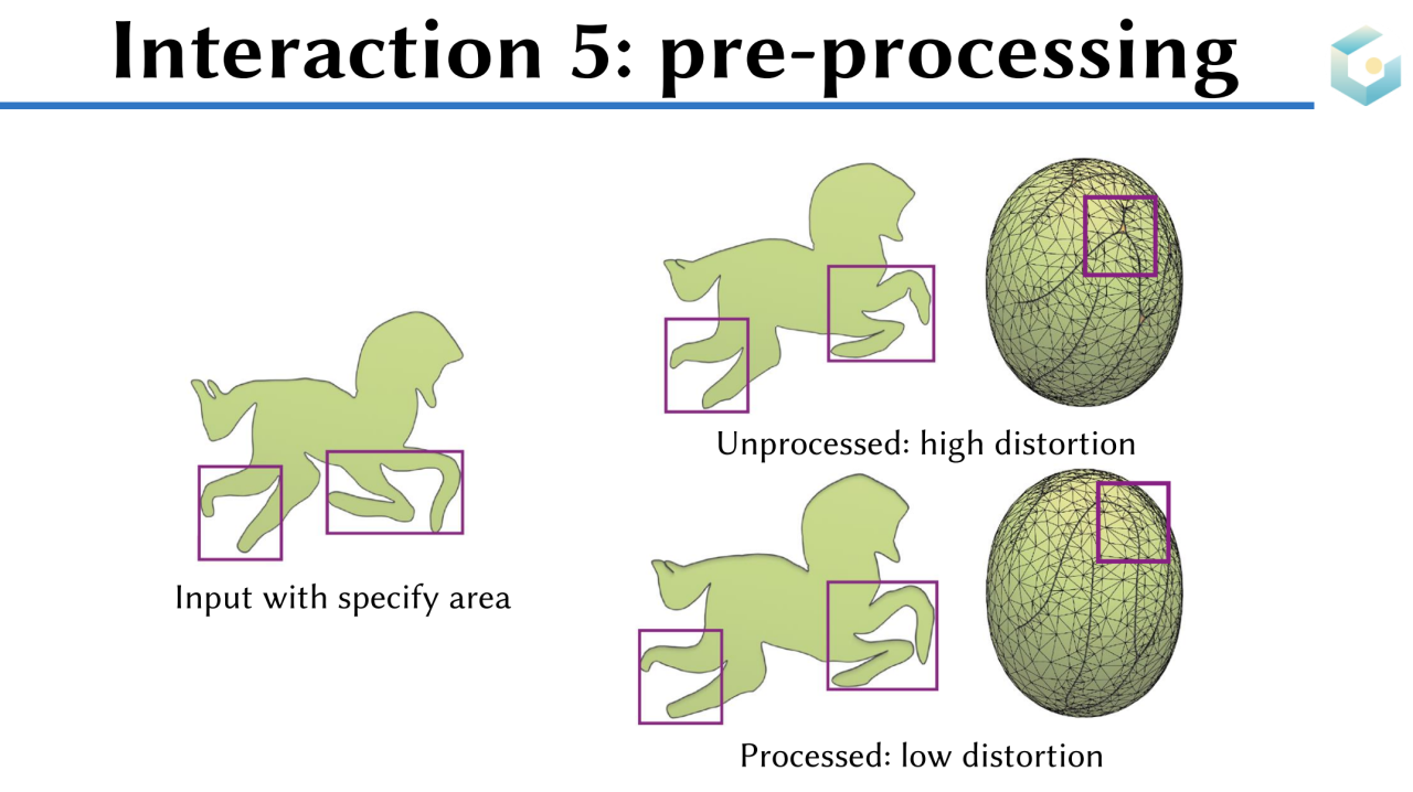 除了优化算法外我们还需要考虑如何跟用户进行交互。有一些性质即使在优化后也很难在球面上进行闭合,这就需要一些交互式的反馈来提醒用户修改输入形状。