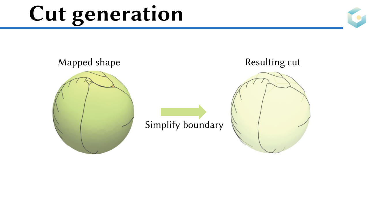最后对球面映射上的边界进行简化就得到了所需的割缝。