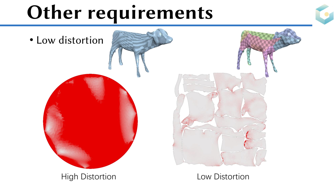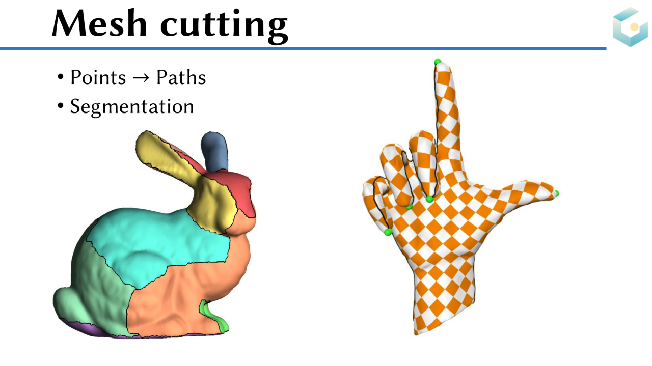 网格切割会将模型表面切成不同的区域。同时我们希望切割后模型参数化的扭曲要尽可能低,而且割线的长度要尽可能小。