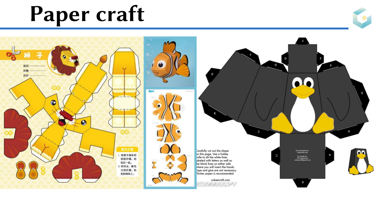 纸模是一种非常常见的艺术形式,我们把模型展开放到二维平面上再重新粘到一起就得到了纸模。