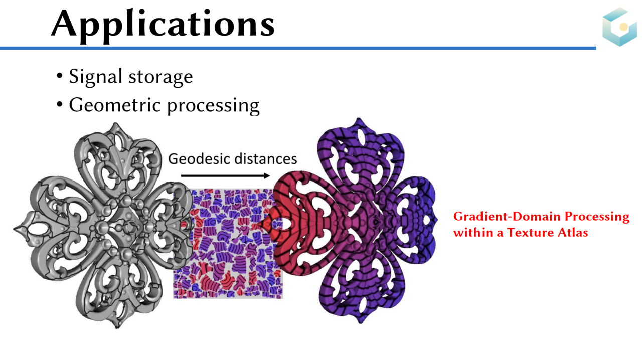 atlas除了用于纹理映射外还可以应用在各种几何处理任务中作为一种记录信息的手段。
