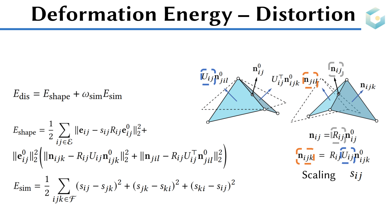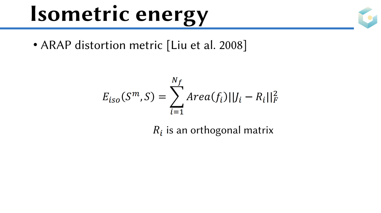 我们希望映射尽可能使一个等距映射,因此可以使用ARAP中使用的几何扭曲能量。