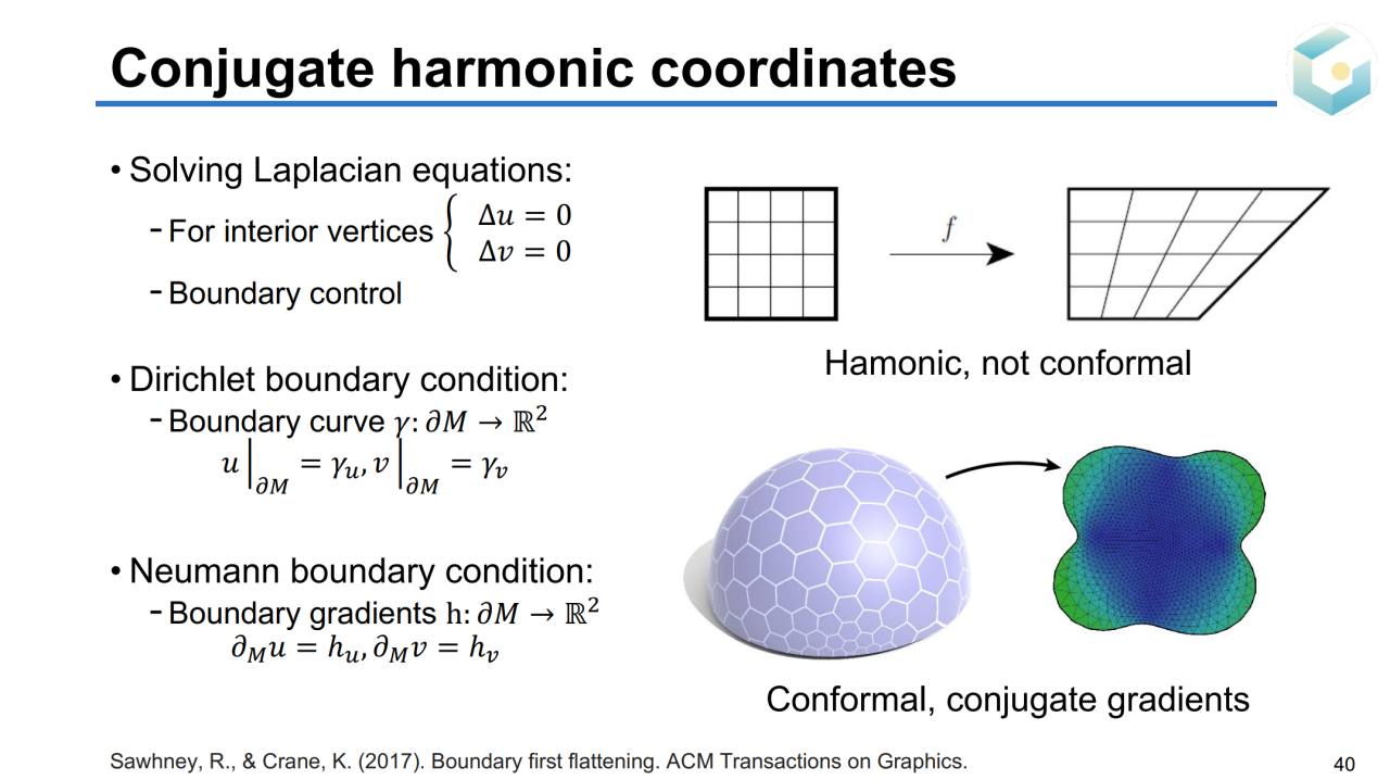上一节介绍过的conjugate harmonic coordinates说明共形映射下两个方向上的变形都是调和函数,而计算调和函数的关键在于选择函数的边界。