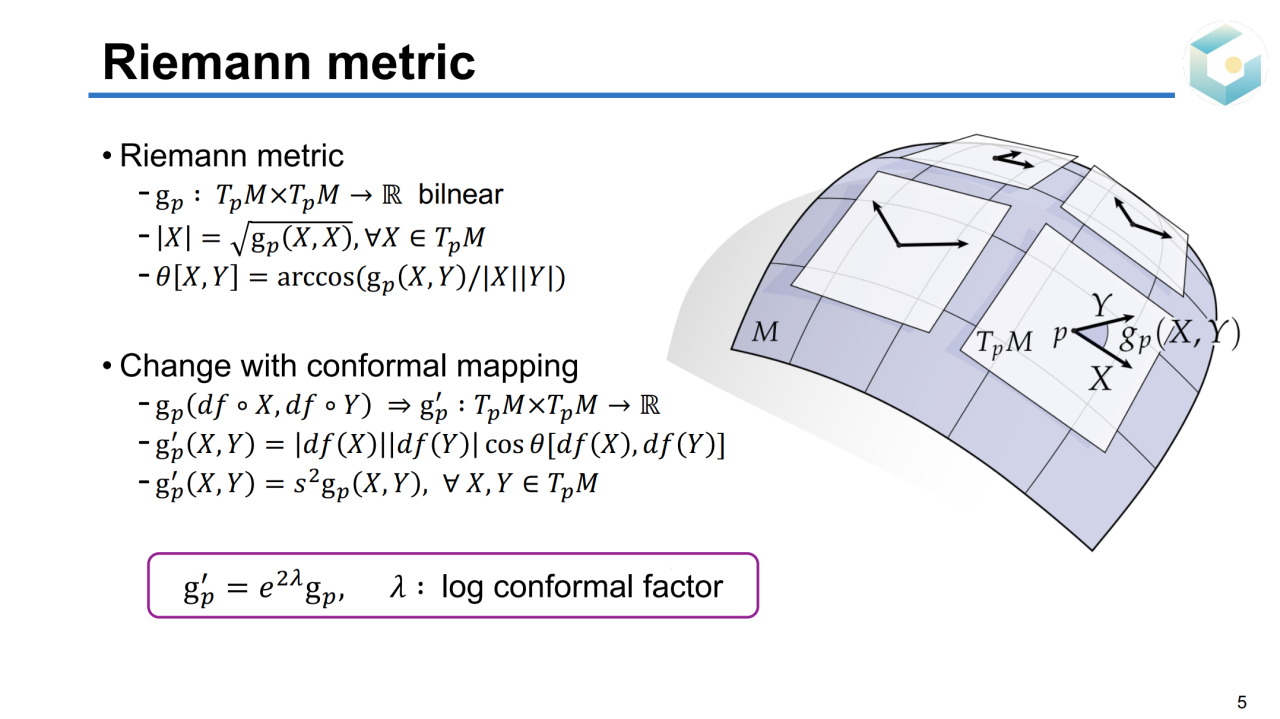 \[g_p' = e^{2 \lambda} \cdot g_p\]上式中\(\lambda \in (-\infty, \infty)\)称为对数共形因子(log conformal factor)。