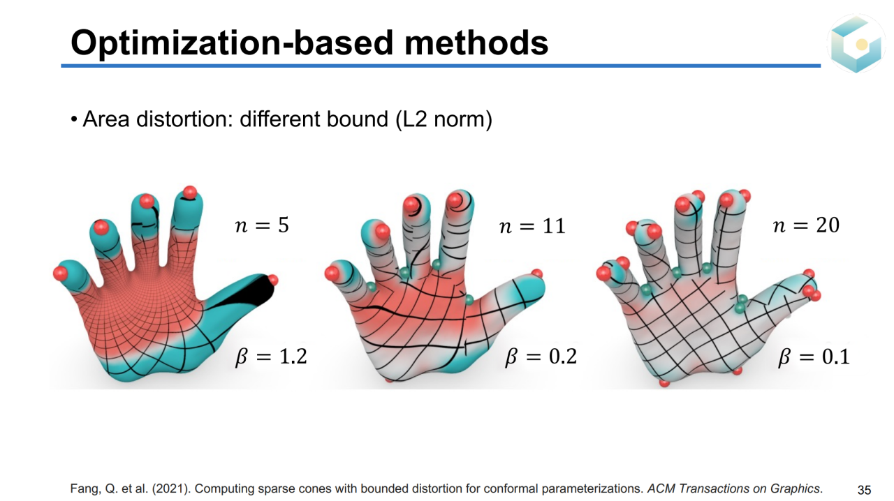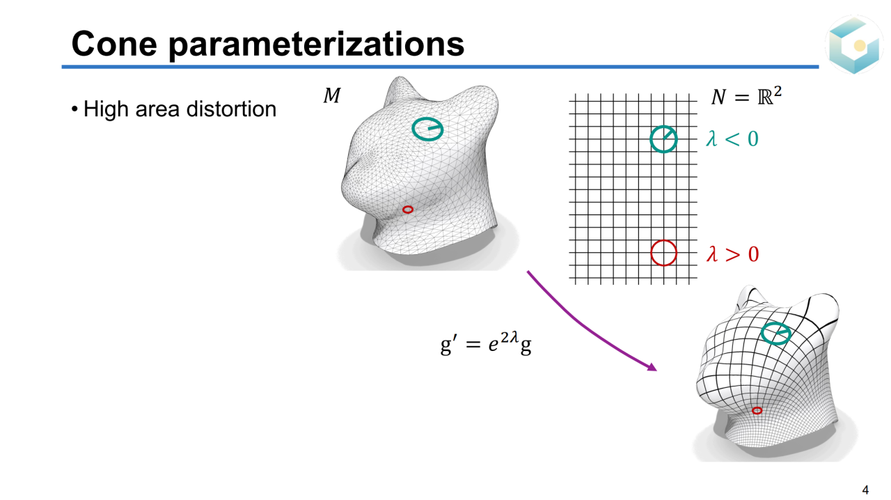 \[g' = e^{2 \lambda} \cdot g\]当\(\lambda\)非常大或是非常小的时候共形映射会产生明显的面积扭曲,降低参数化的质量。