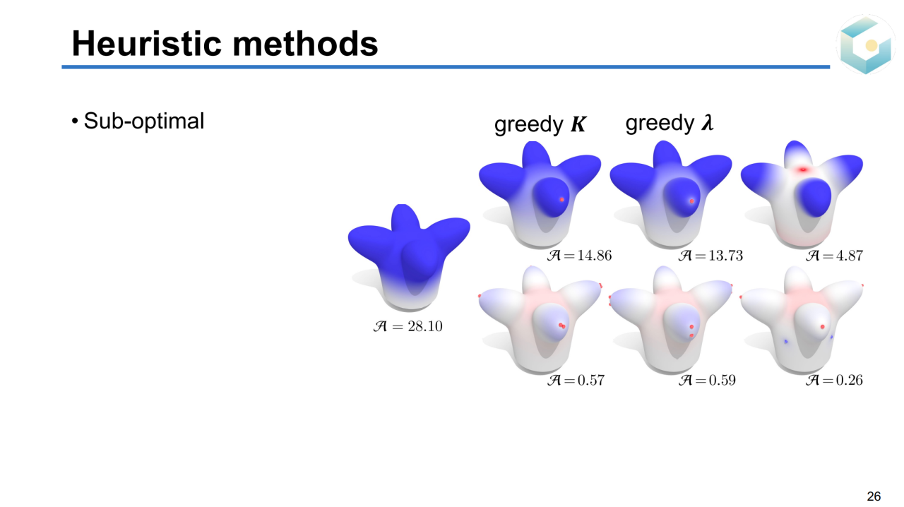 启发式算法的一个主要缺陷在于它容易陷入局部最优的问题。实际上锥奇异点并不一定都是高斯曲率的极值点,有时在一些平坦区域上设置锥奇异点可能会得到更小的面积扭曲。