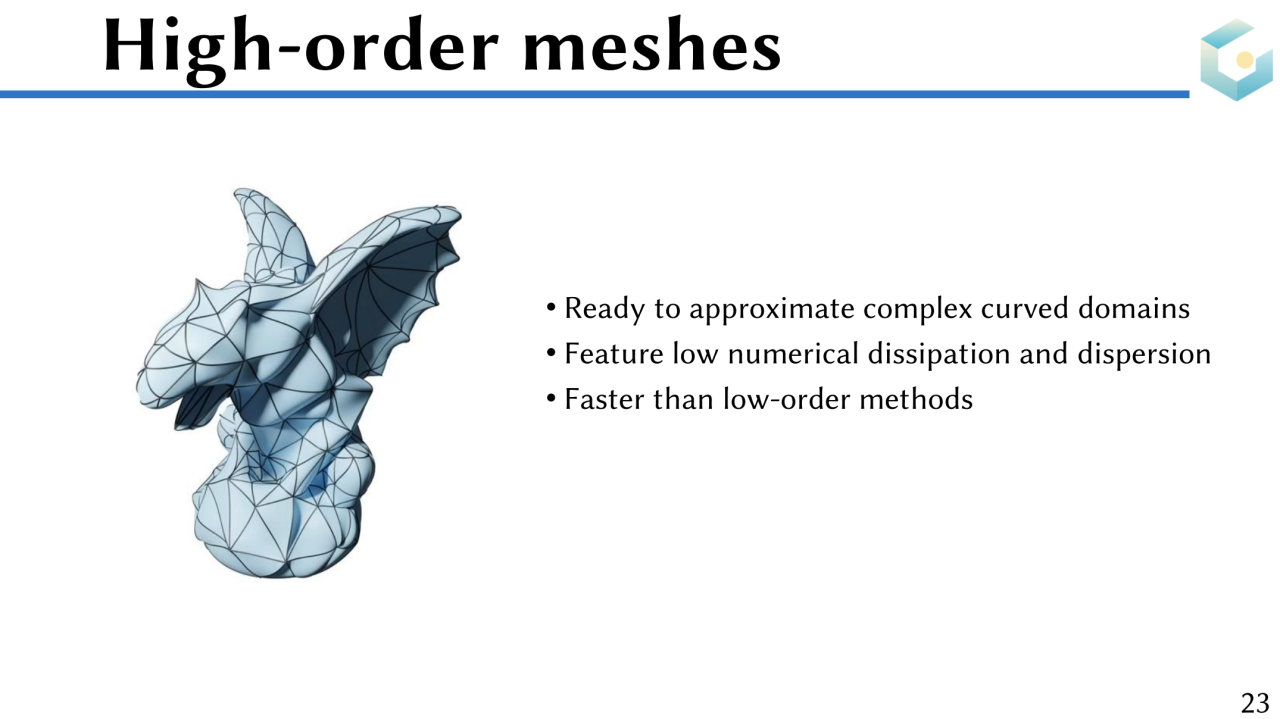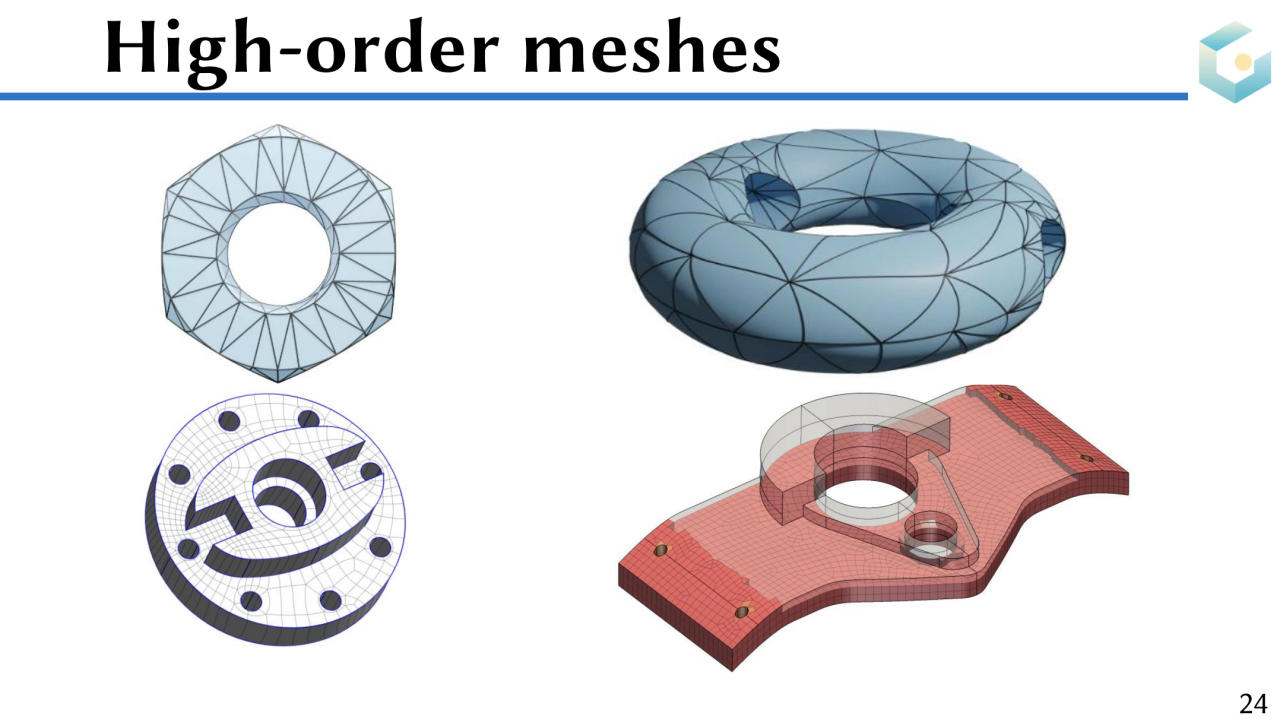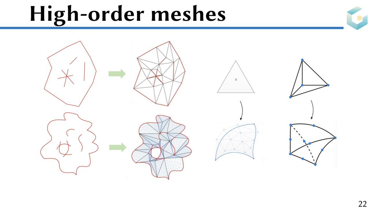 在本课程中我们基本只考虑一阶线性网格,但在很多领域高阶网格(high-order mesh)也有非常多的应用。