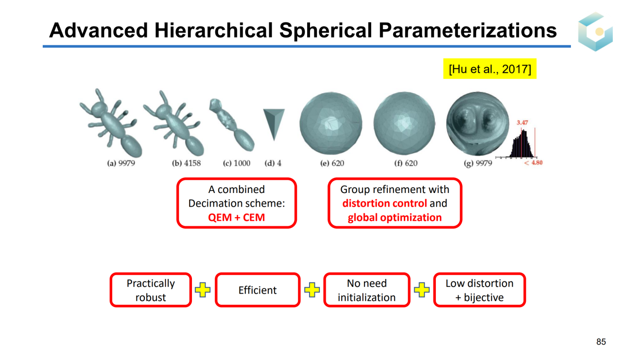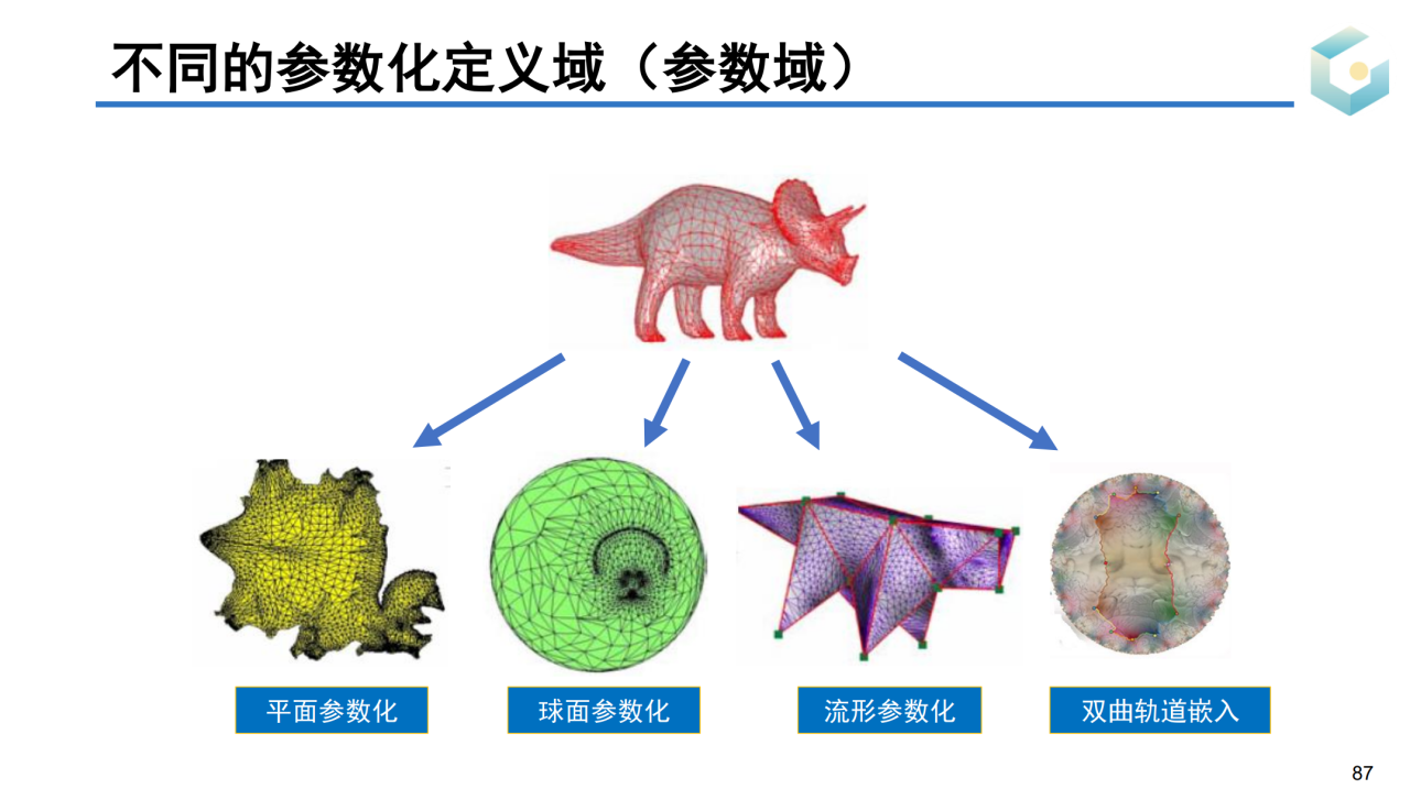 更进一步,参数化的目标域不一定要局限于二维平面。实际上球面、流形以及双曲空间都可以是参数化的目标域。