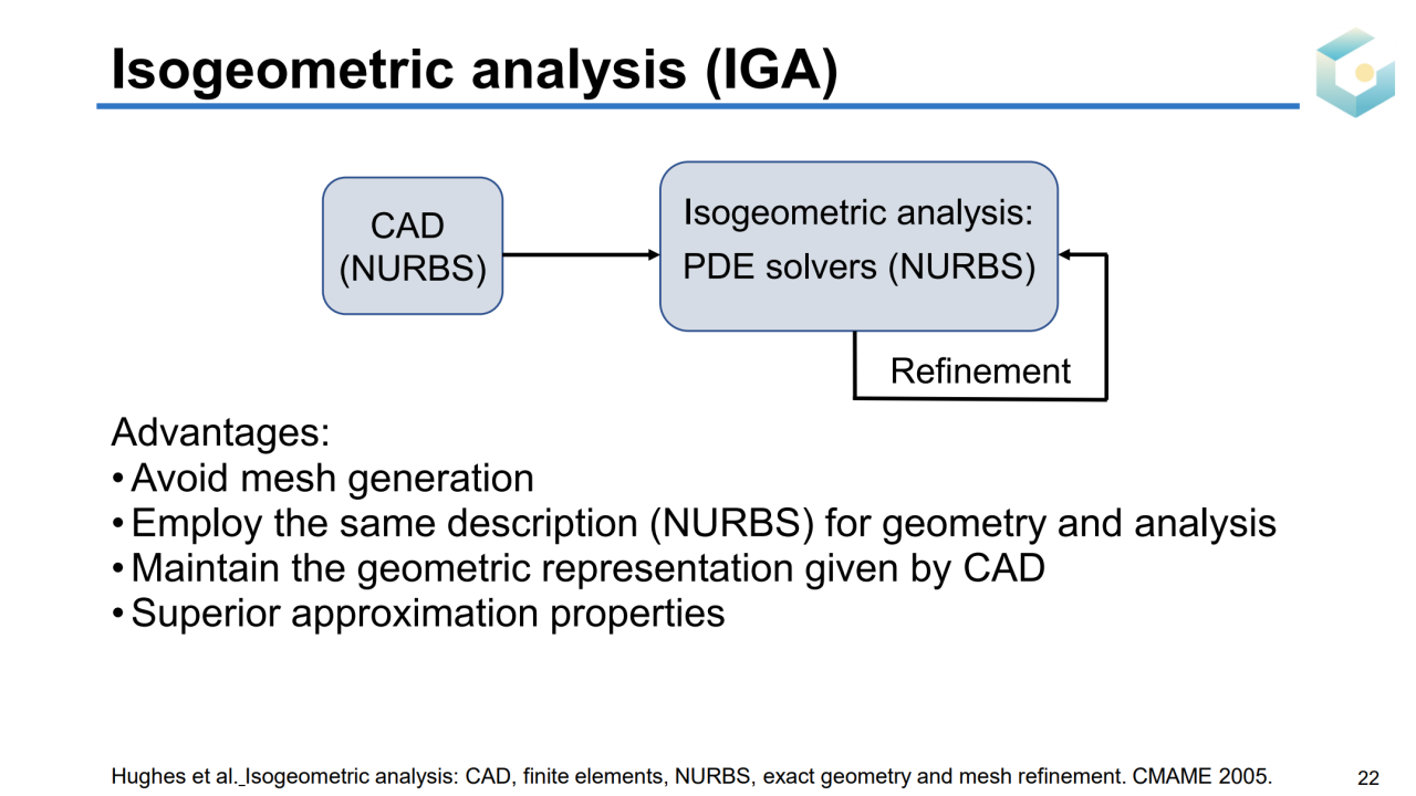 因此美国科学院院士T. J. R. Hughes教授提出了等几何分析(isogeometric analysis, IGA)的概念,通过直接在CAD模型上求解PDE的方式来避免耗时的网格生成过程。
