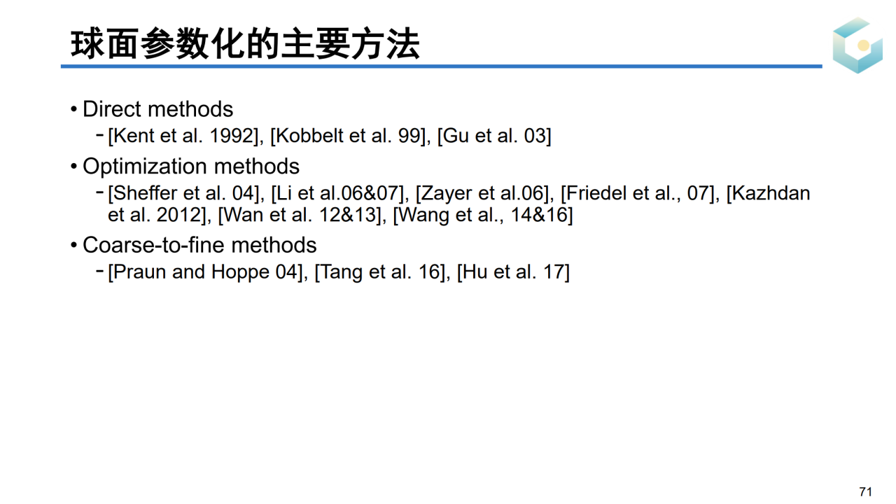 球面参数化相对比较小众,其主要方法如下。