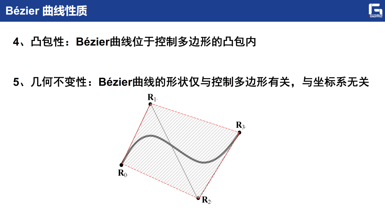 - 几何不变性:Bézier曲线的形状仅与控制多边形有关,与坐标系无关