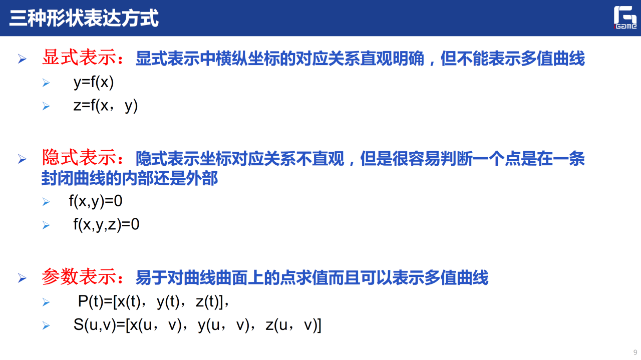 目前常用的几何形状表示方法主要包括显式表示、隐式表示和参数表示三种:
