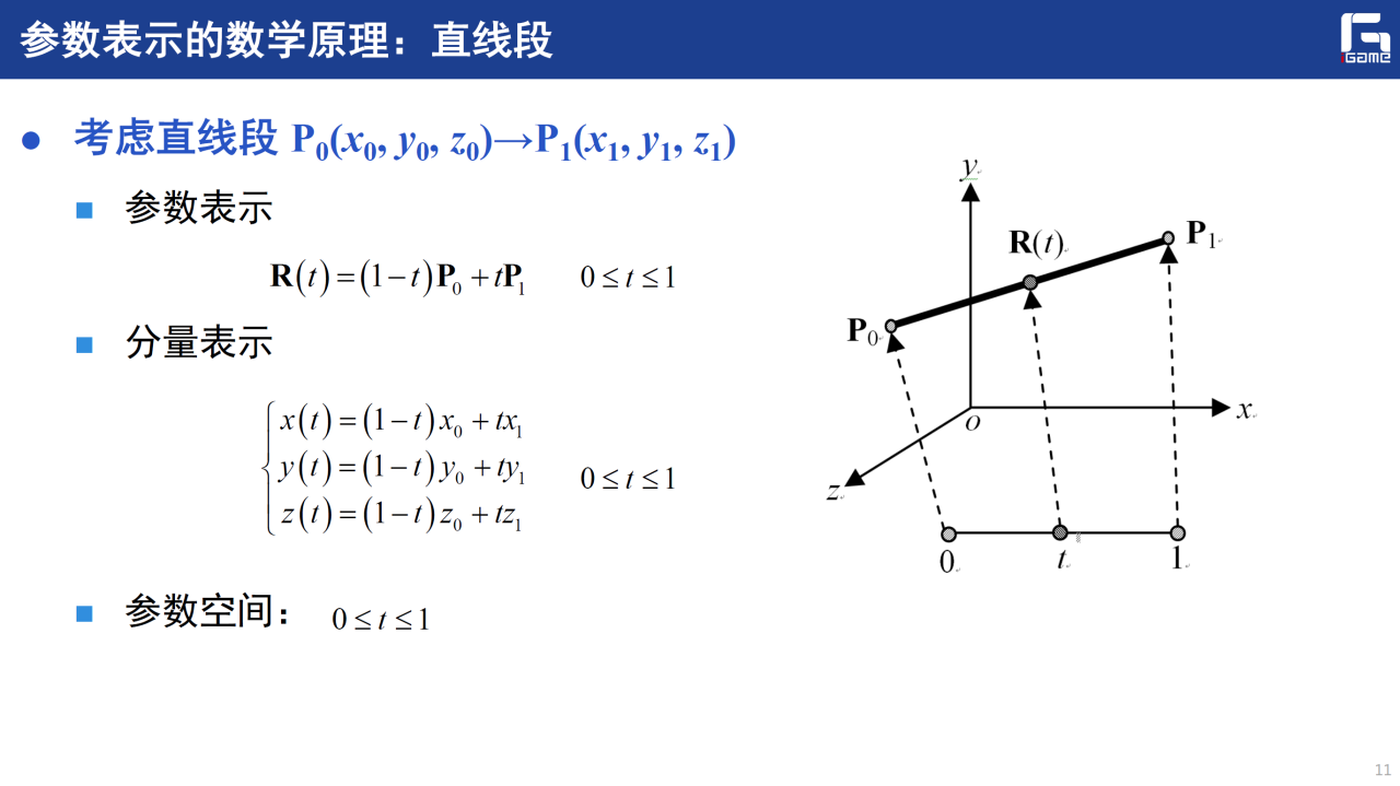 比如说直线段的参数表示可以通过对两个端点进行插值来得到。