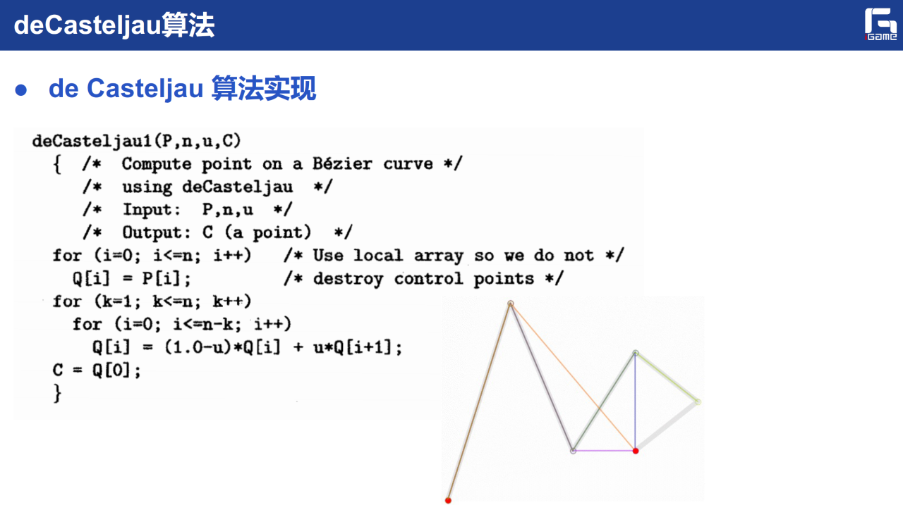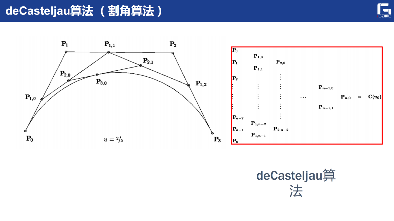 对于控制点更多的情况,我们只需要递归地缩减控制点的数量直到计算出曲线坐标即可。