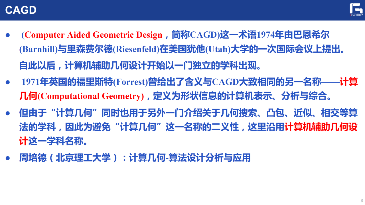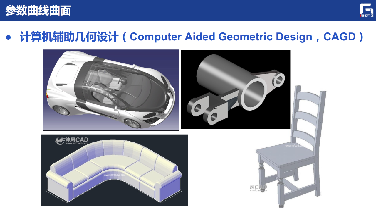 计算机辅助几何设计(Computer Aided Geometric Design, CAGD)是研究如何使用计算机来辅助工程中几何对象表示和设计的学科。