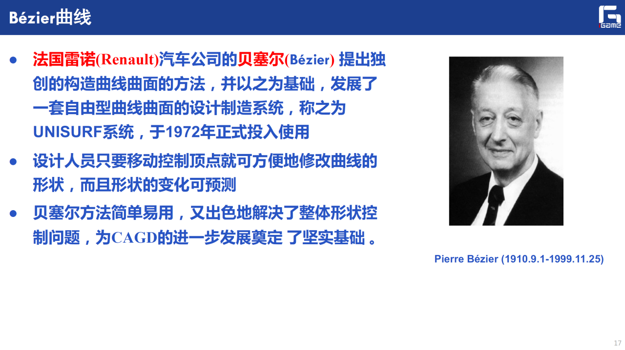 早期的曲线曲面表示方法都是由工业界的工程师来开发的。