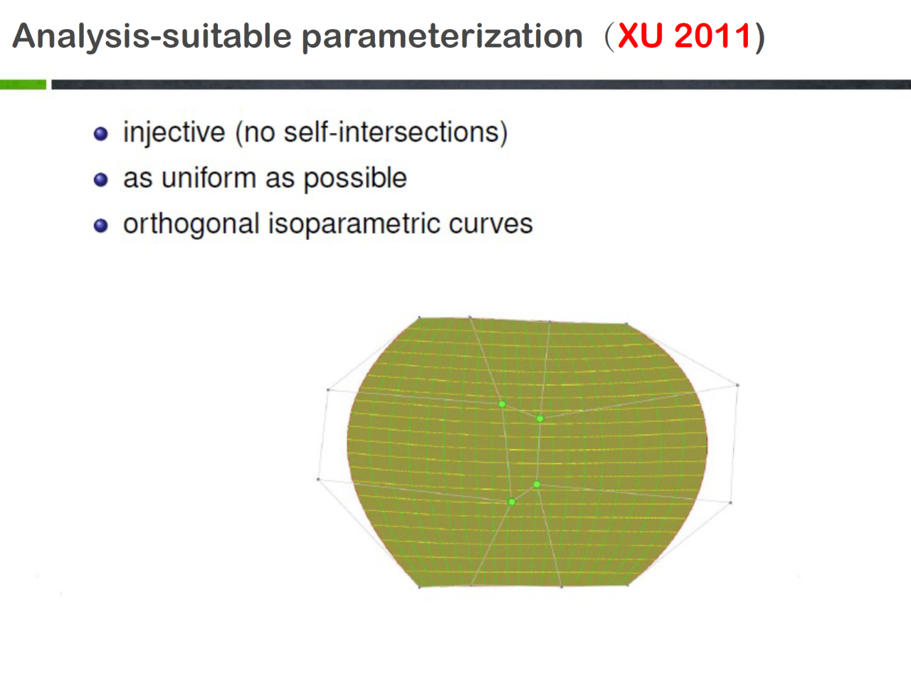 一个理想的参数化需要保证没有自交、尽可能均匀并且等参线相互正交。