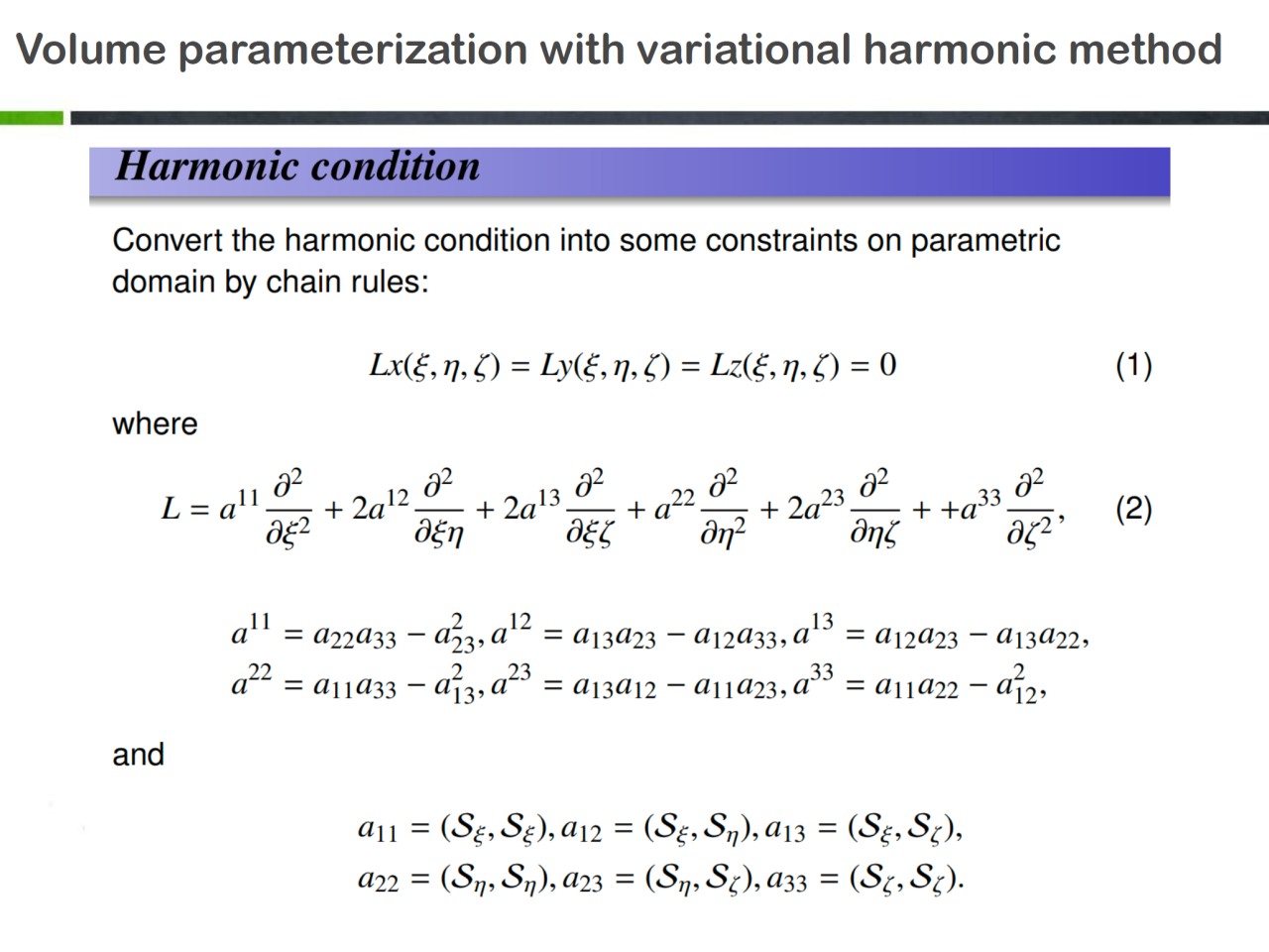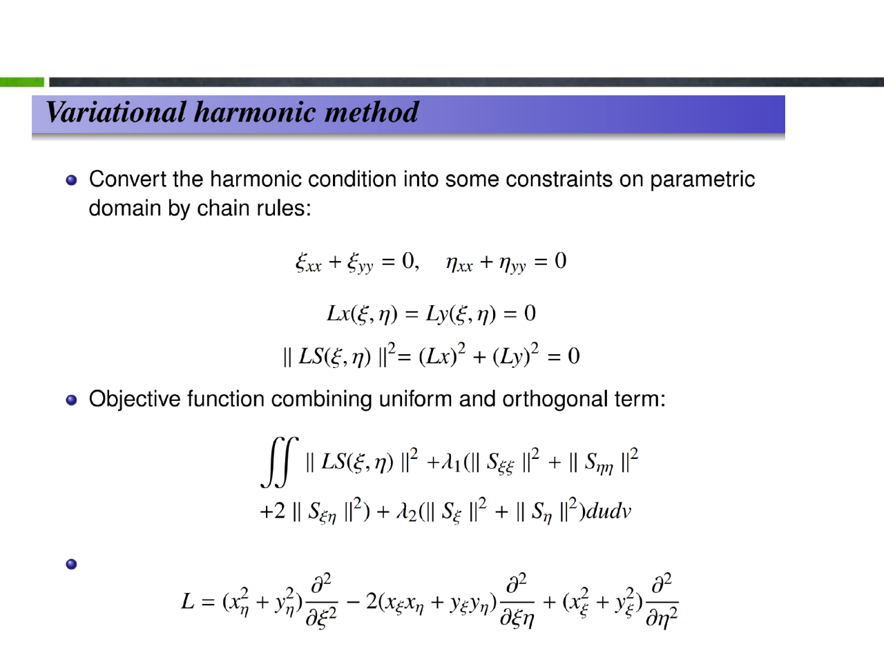 这样我们可以把没有自交作为约束,把均匀分布和等参线相互正交作为优化目标,将原始的参数化转换为一个约束优化问题。