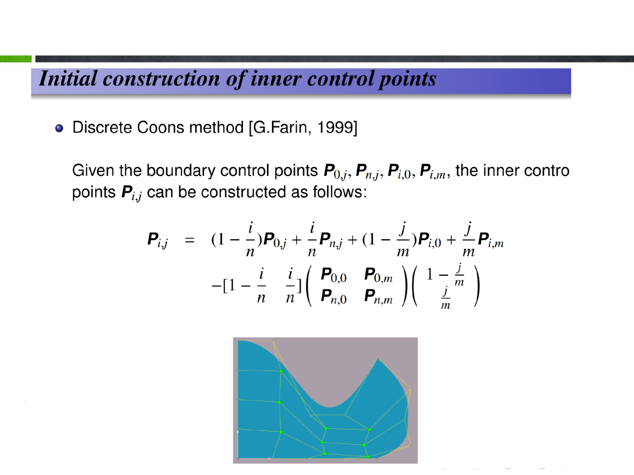 基于优化的思想可以得到Coons算法,它是一种直接对边界点进行插值来获得内部控制点的方法。
